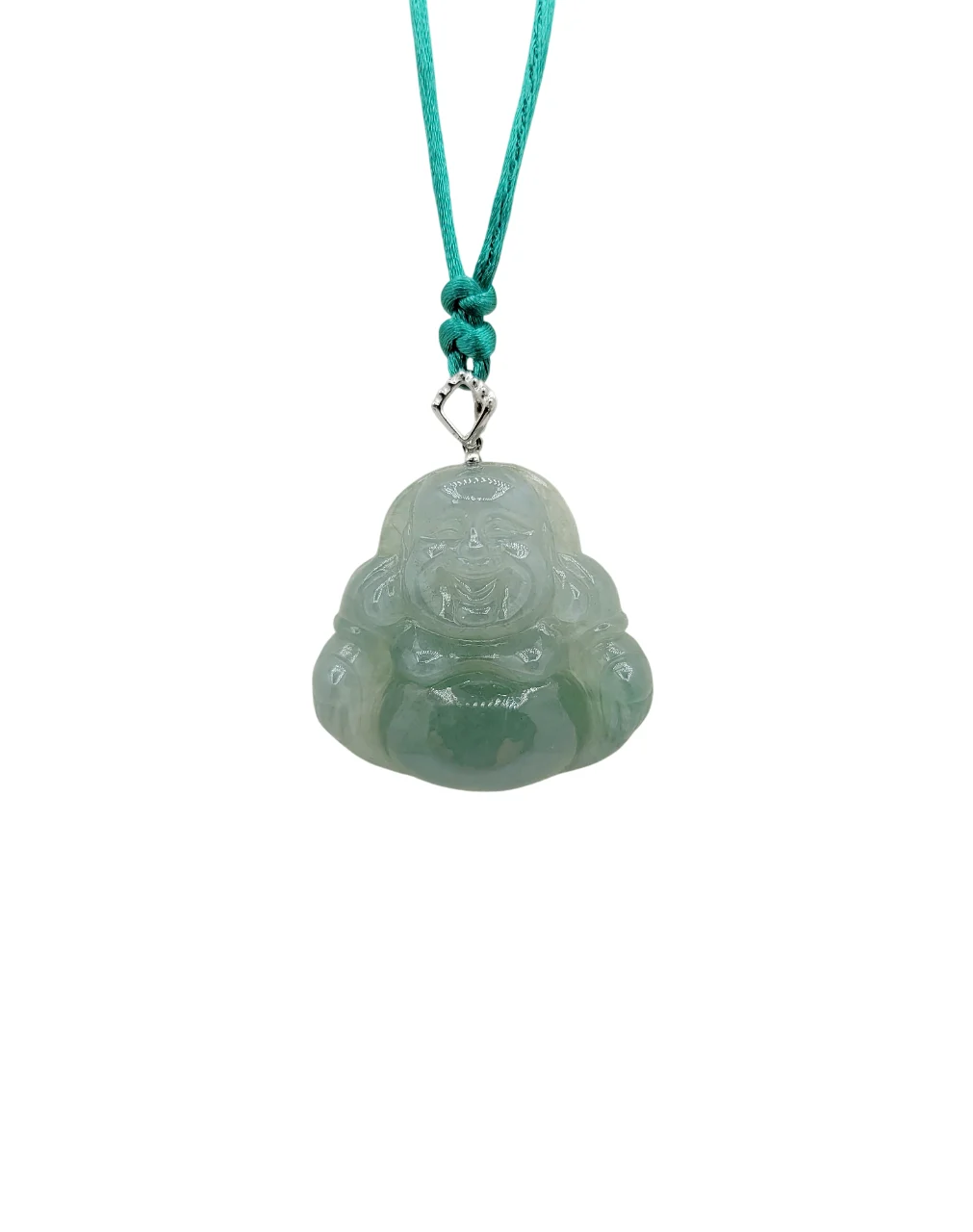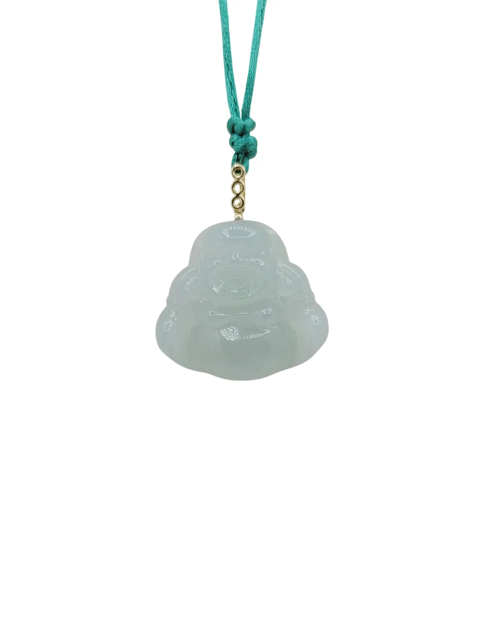 14K Gold Icy or Pale Green Laughing Buddha Jadeite Jade Pendant