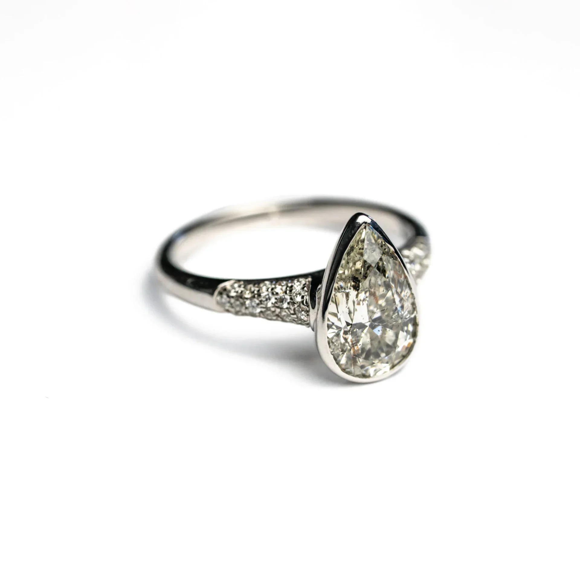 14K White Gold 1.66ct Pear Brilliant Diamond Icefall Ring