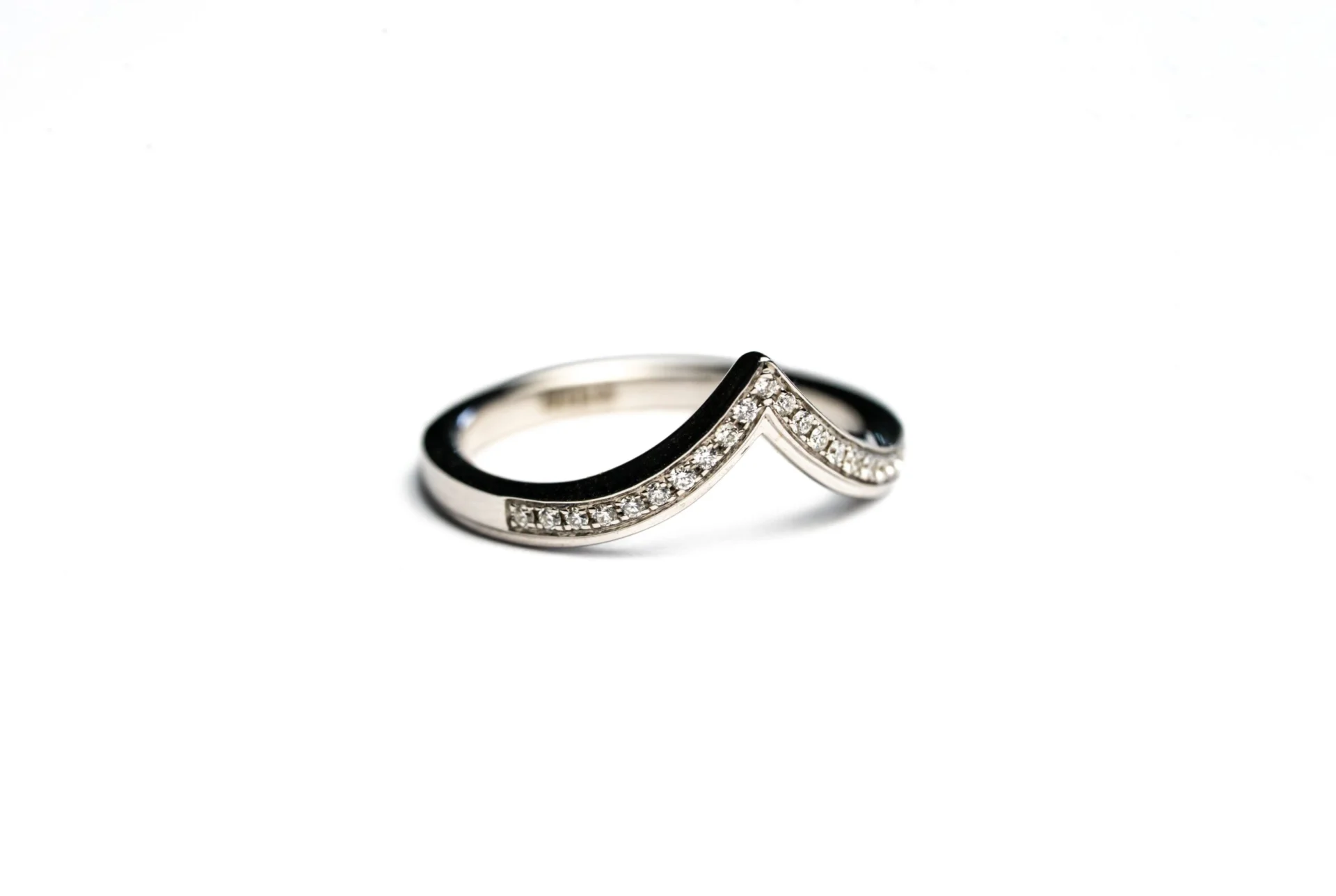 14K White Gold Aurora High Chevron Natural Diamond Band