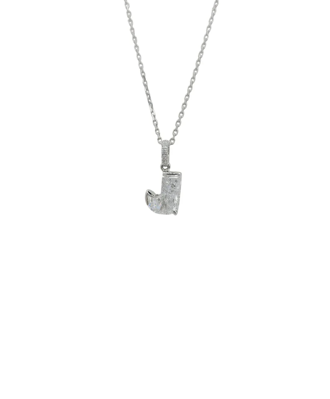 14K White Gold Letter Lab Grown Diamond Solitaire Necklace