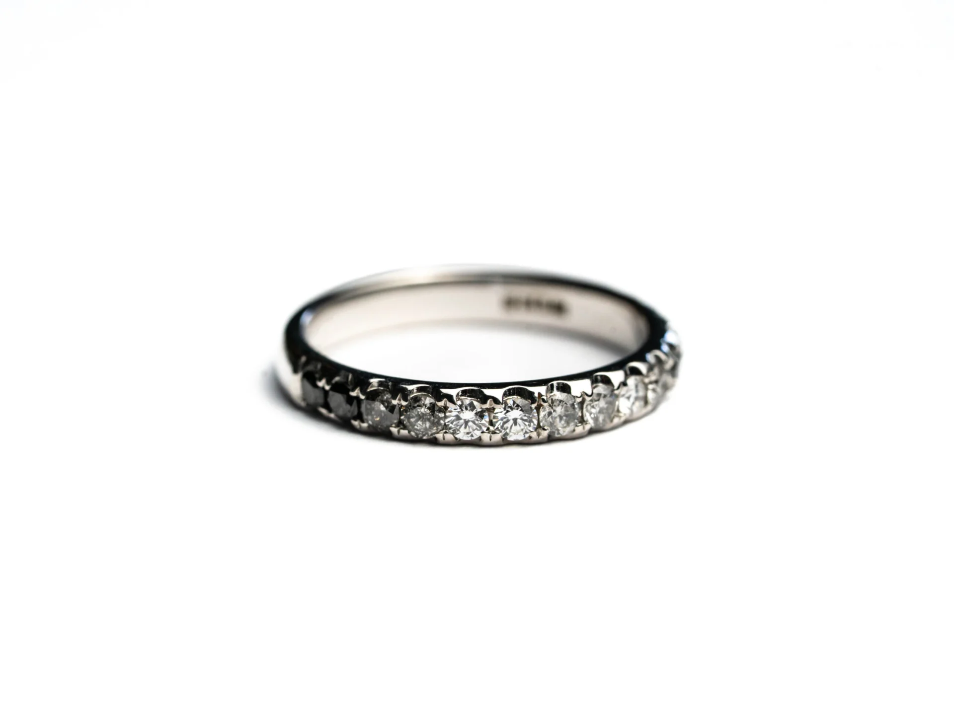 14K White Gold Salt and Pepper Ombre Eclipse Natural Diamond Band
