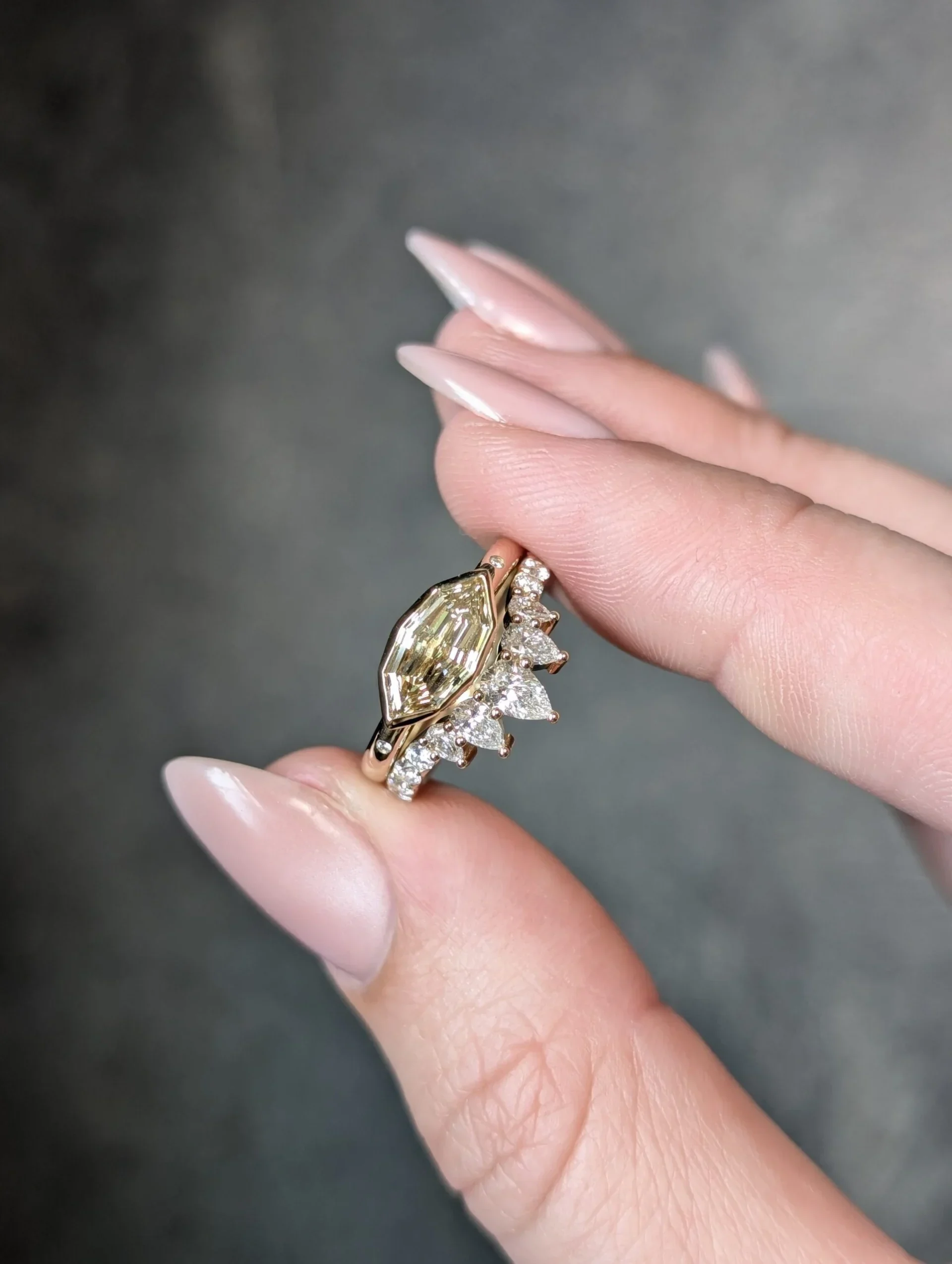14K Yellow Gold 1.06ct C5 Geometric Natural Marquise Step Cut Diamond Dune Ring
