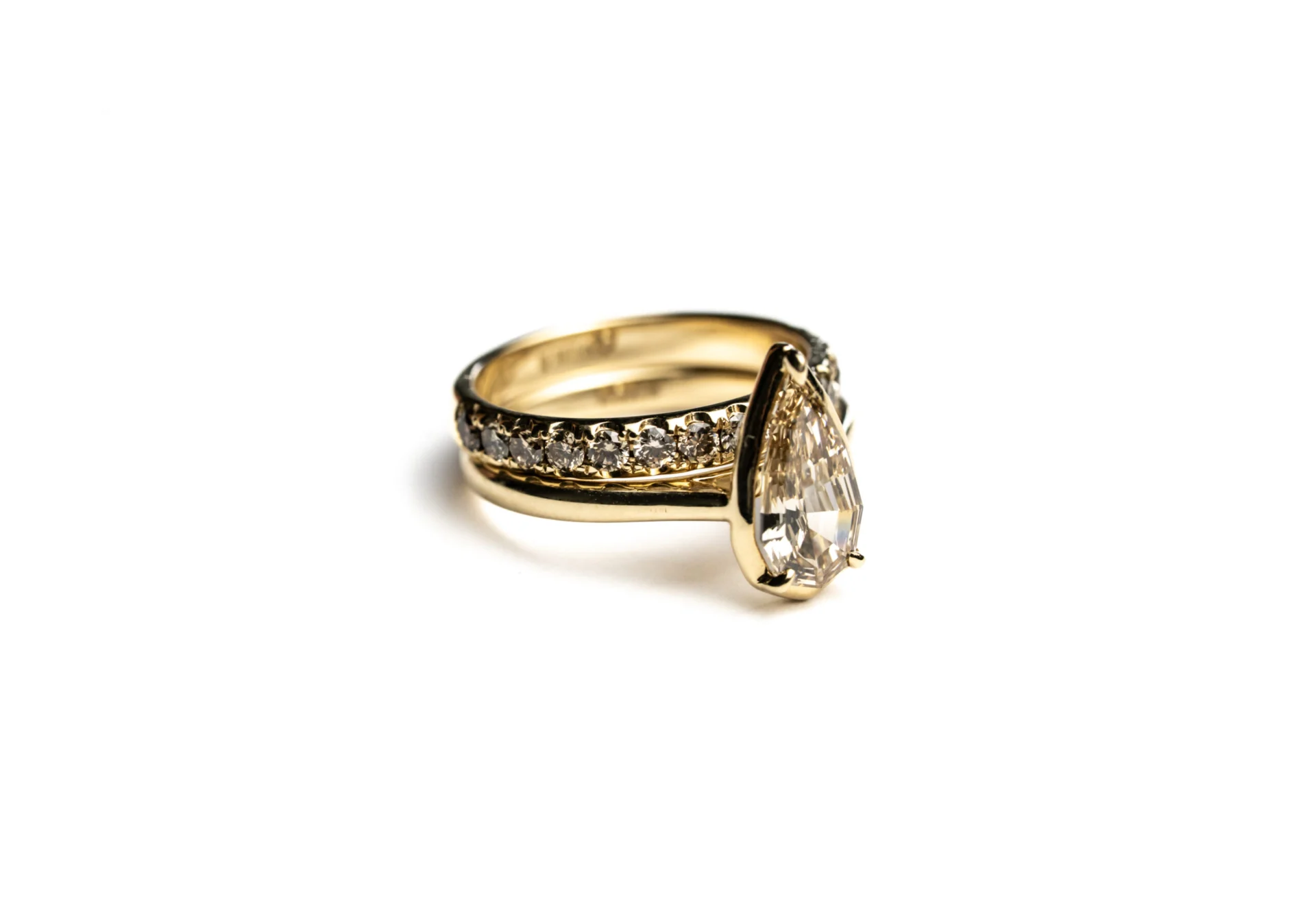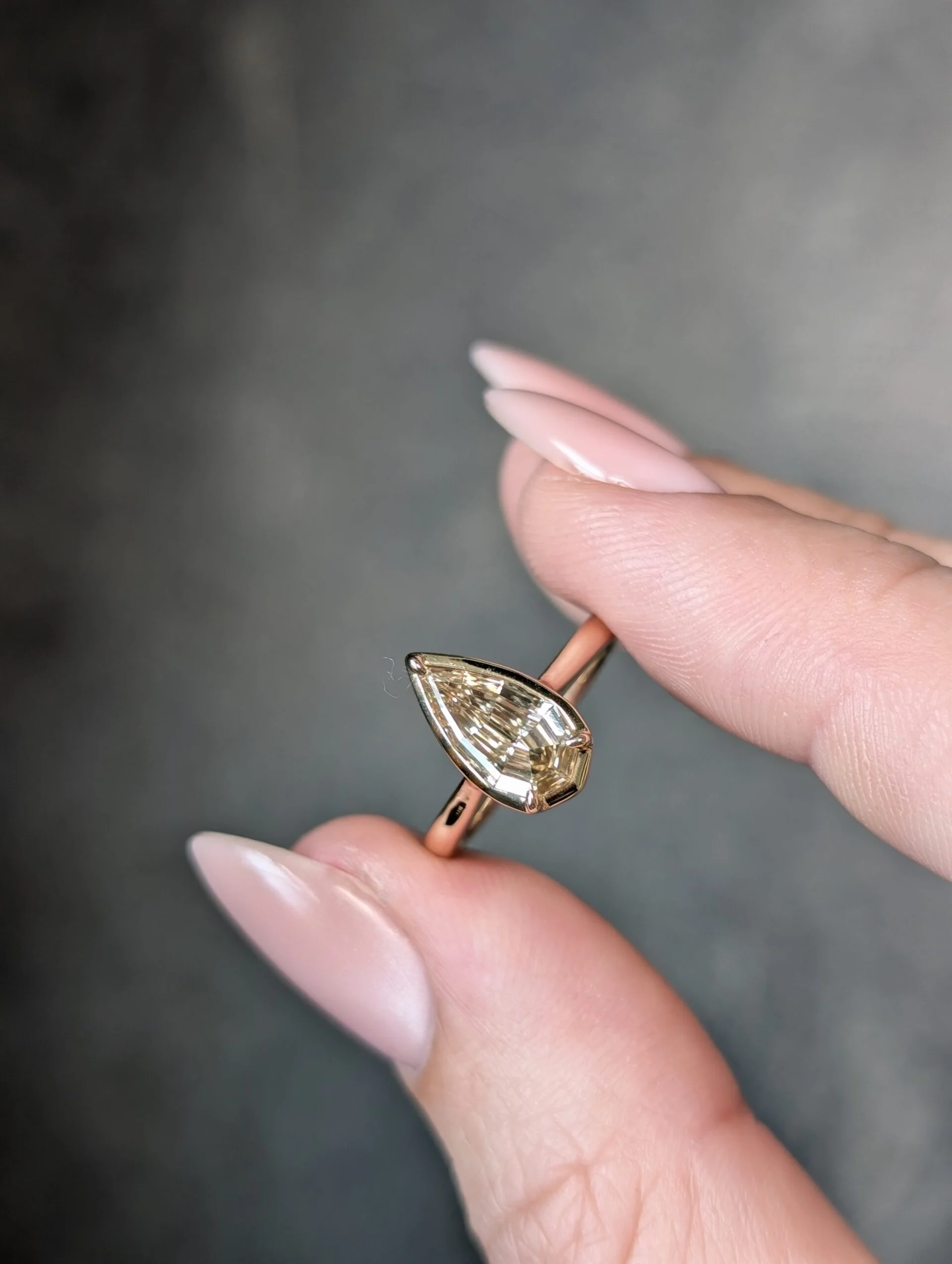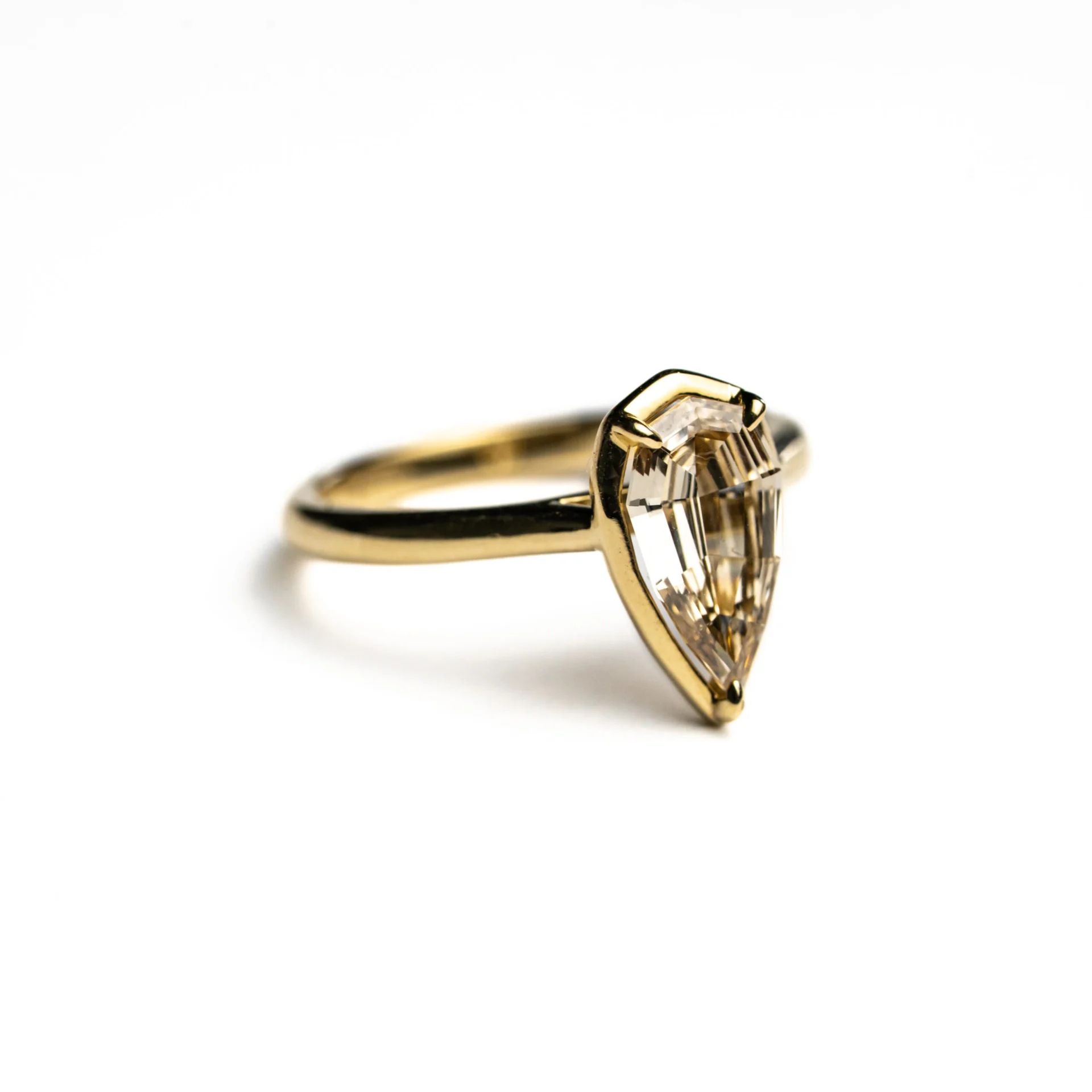 14K Yellow Gold 1.13ct C5 Geometric Natural Pear Step Cut Diamond Oasis Ring