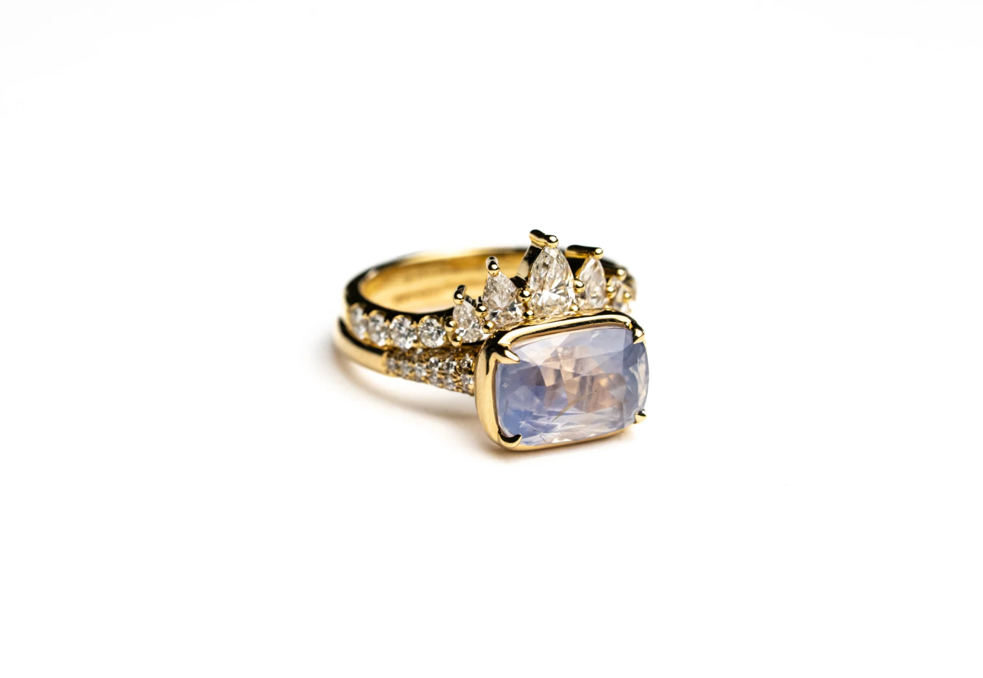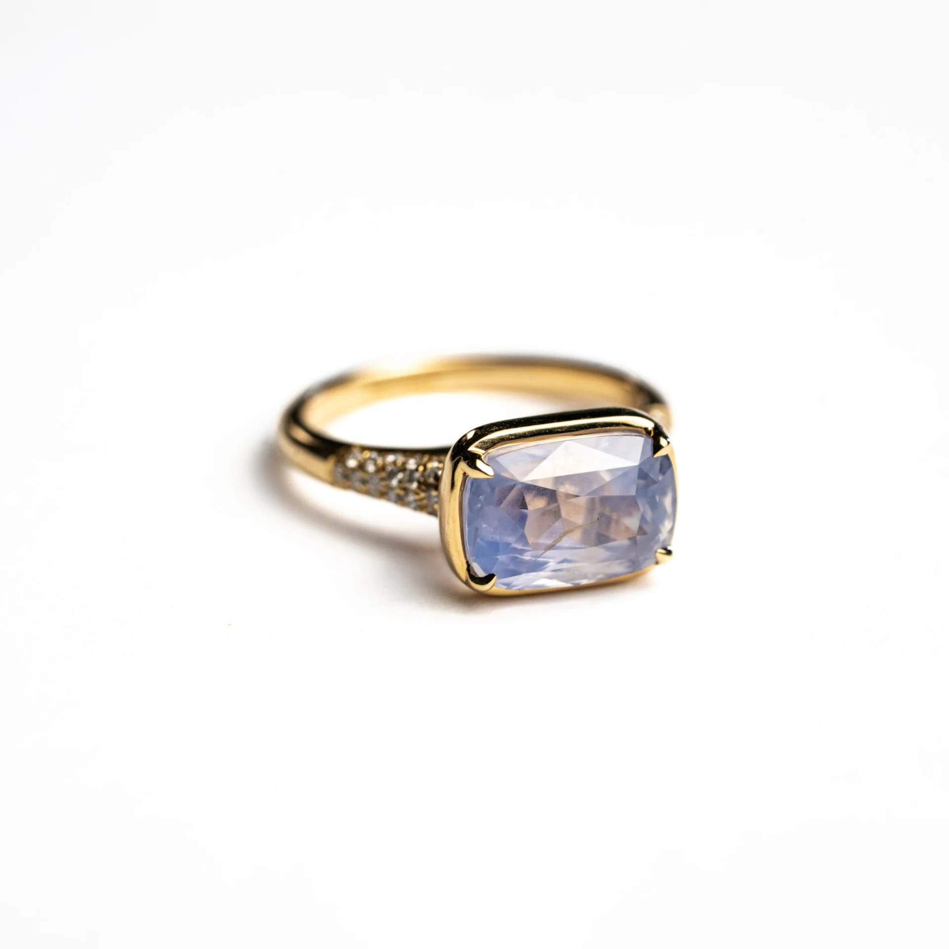 14K Yellow Gold 4.11ct Cushion Brilliant Sapphire Horizon Ring
