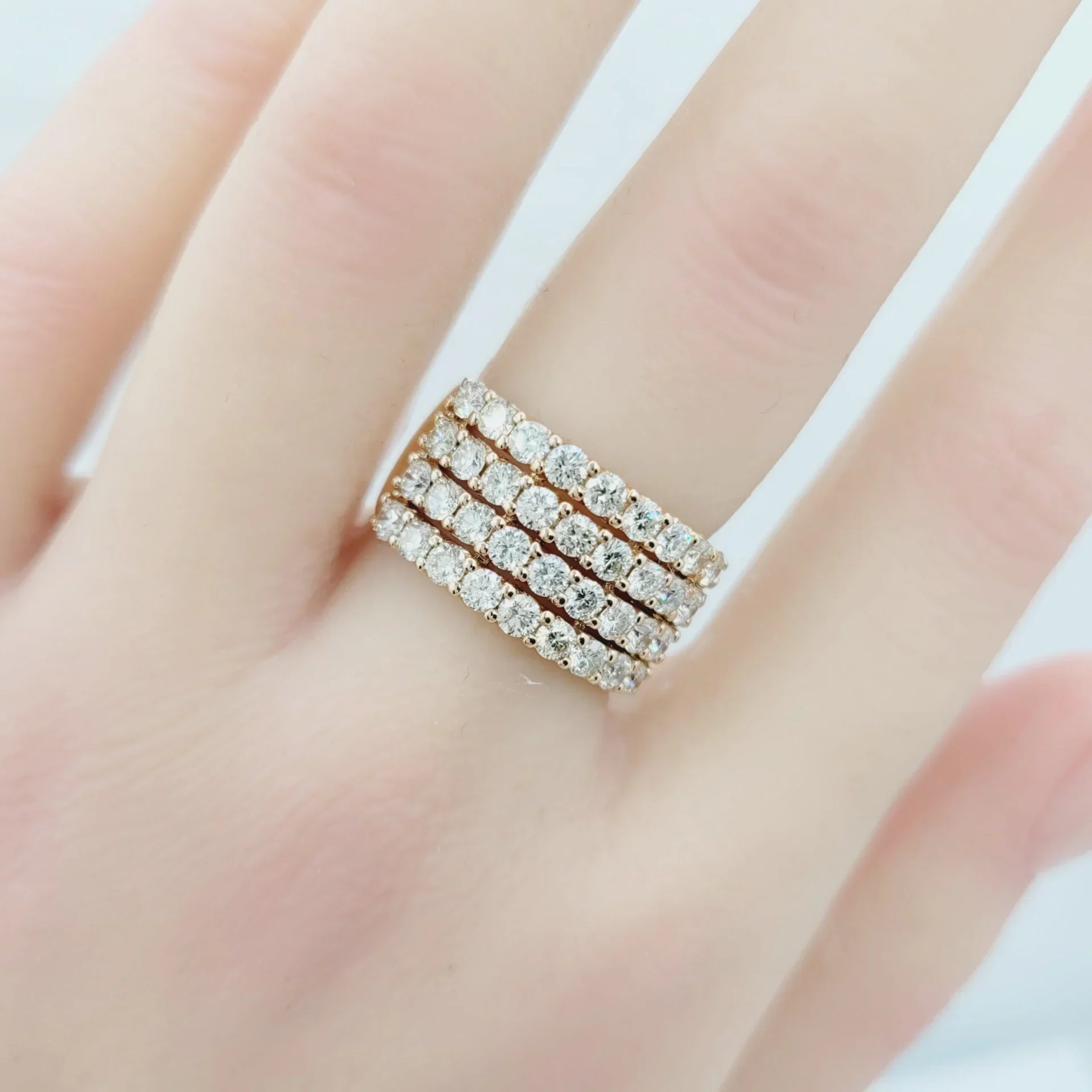 18K Rose Gold Four Row Natural Diamond Anniversary Ring