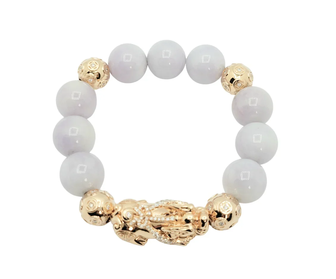 18K Rose Gold Pixiu Icy Lavender Beads Bracelet with Money Balls