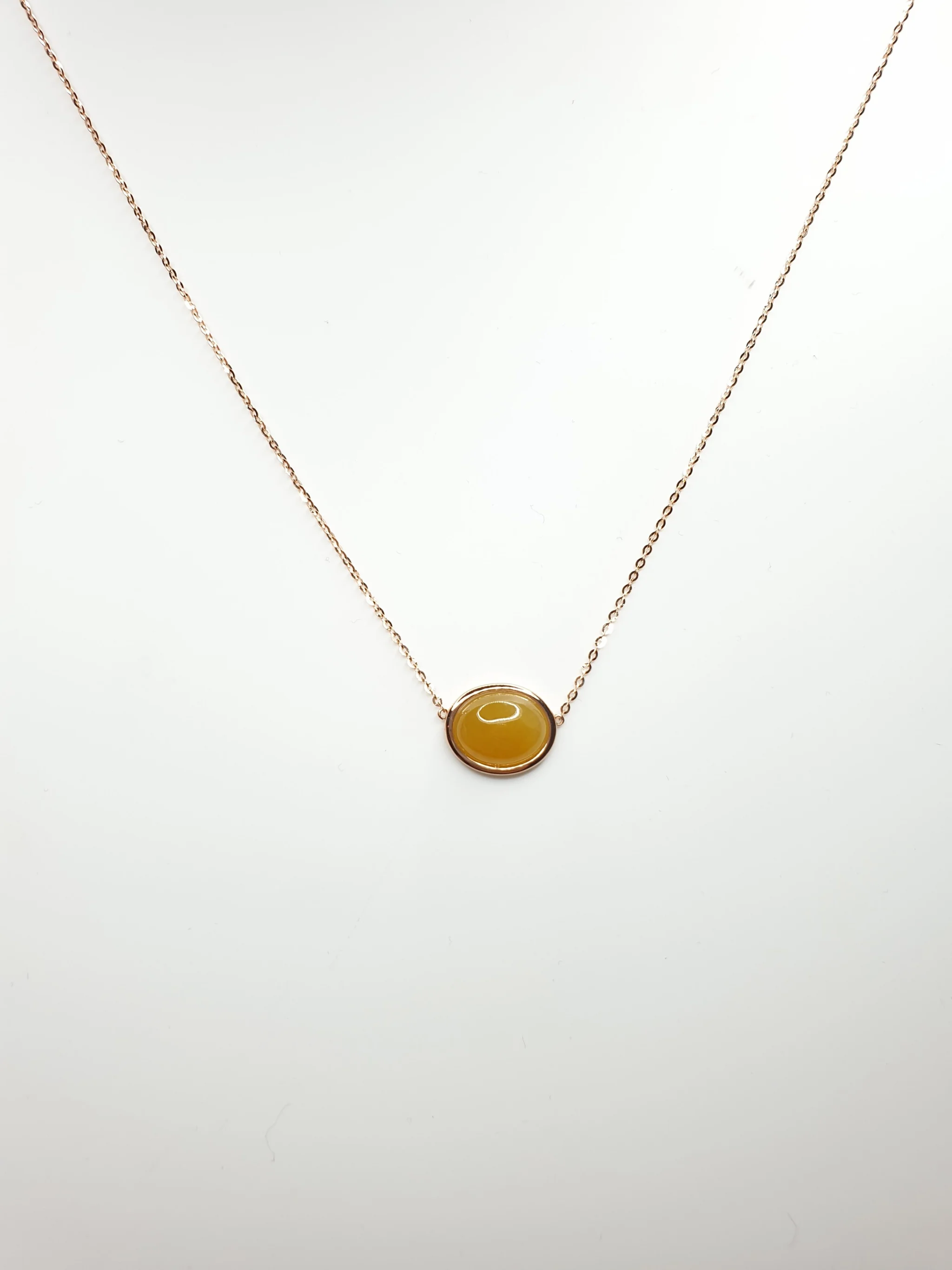 18K Rose Gold Yellow Oval Jadeite Jade Necklace (Medium)