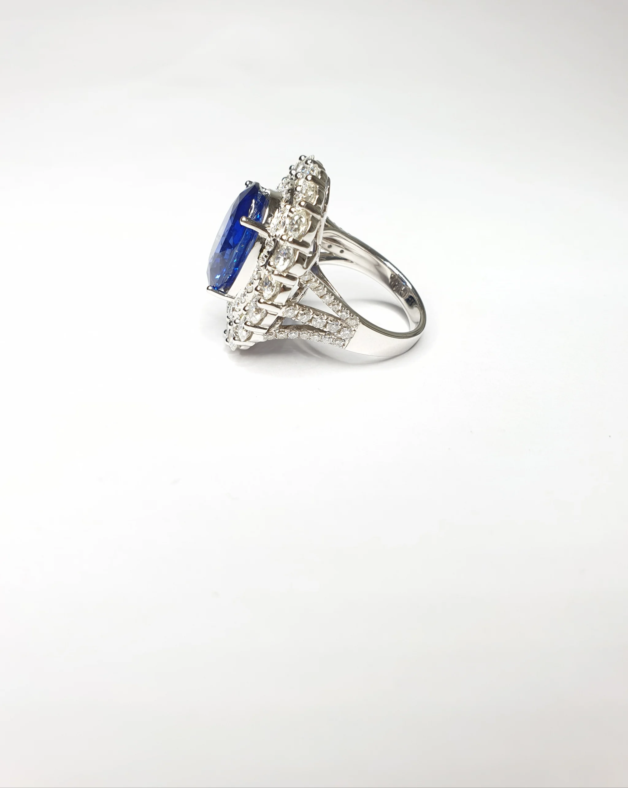 18K White Gold 12.65ct Blue Sapphire Natural Diamond Ring