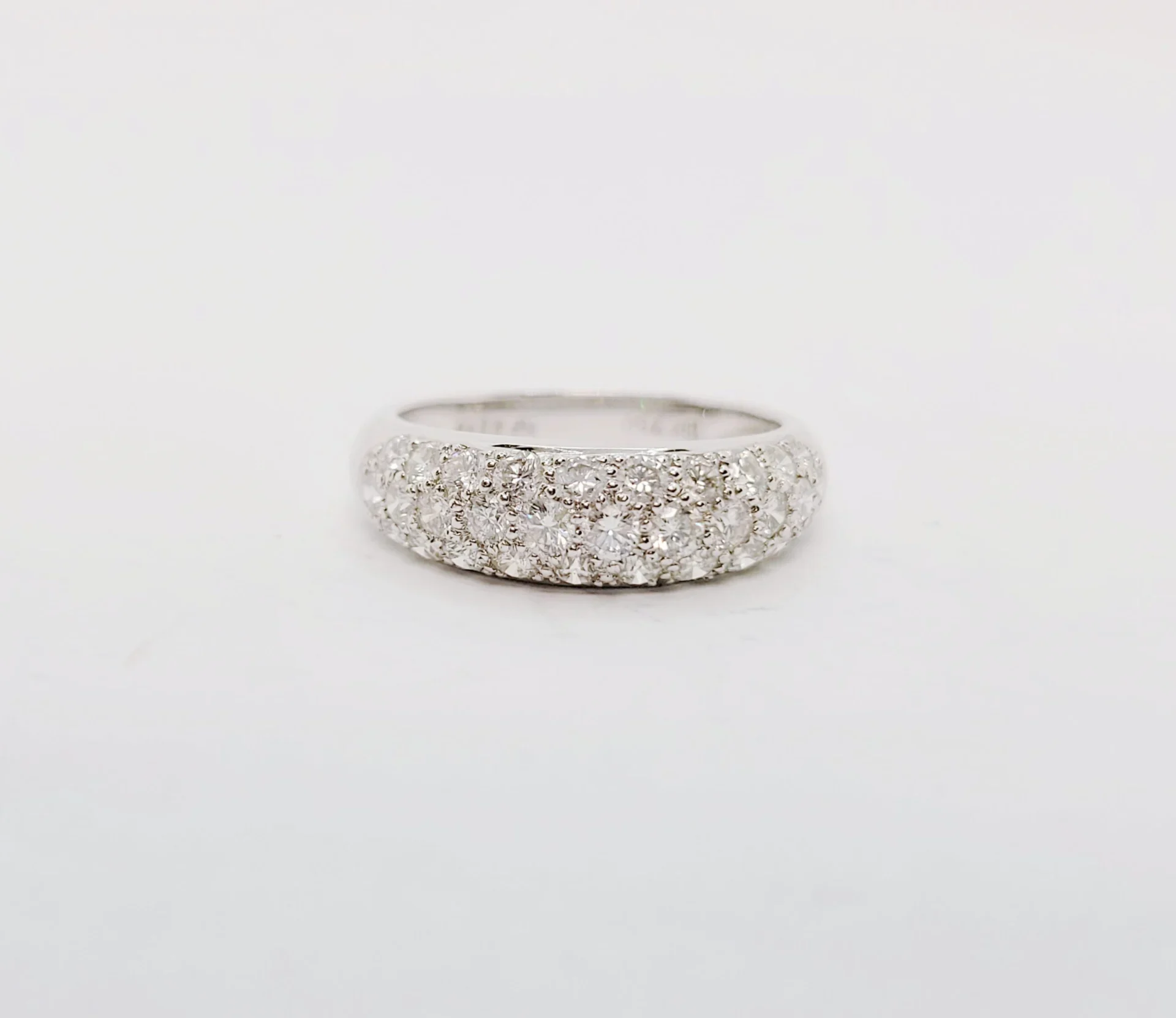 18K White Gold 3 Row Pave Natural Diamond Ring