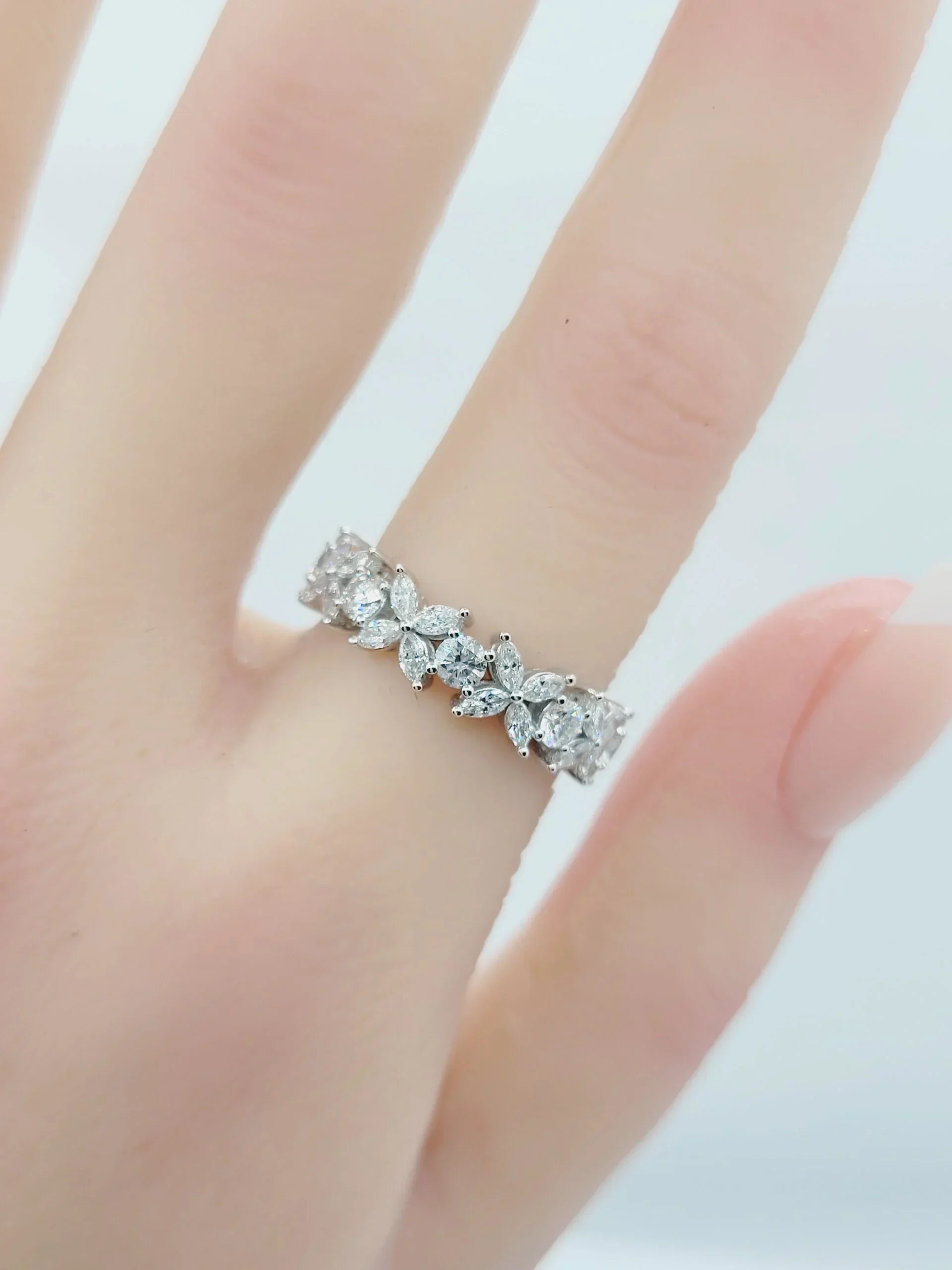 18K White Gold Fancy Shape Natural Diamond Eternity Anniversary Ring