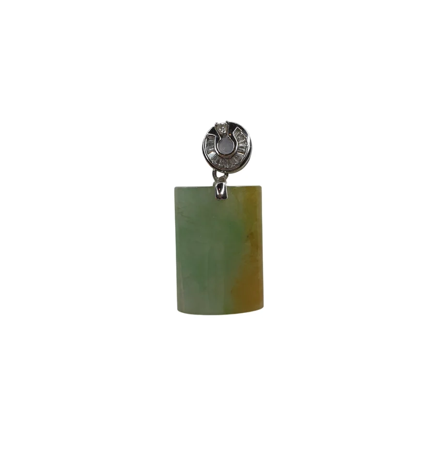 18K White Gold Icy Green and Yellow with Diamonds Jadeite Jade Pendant