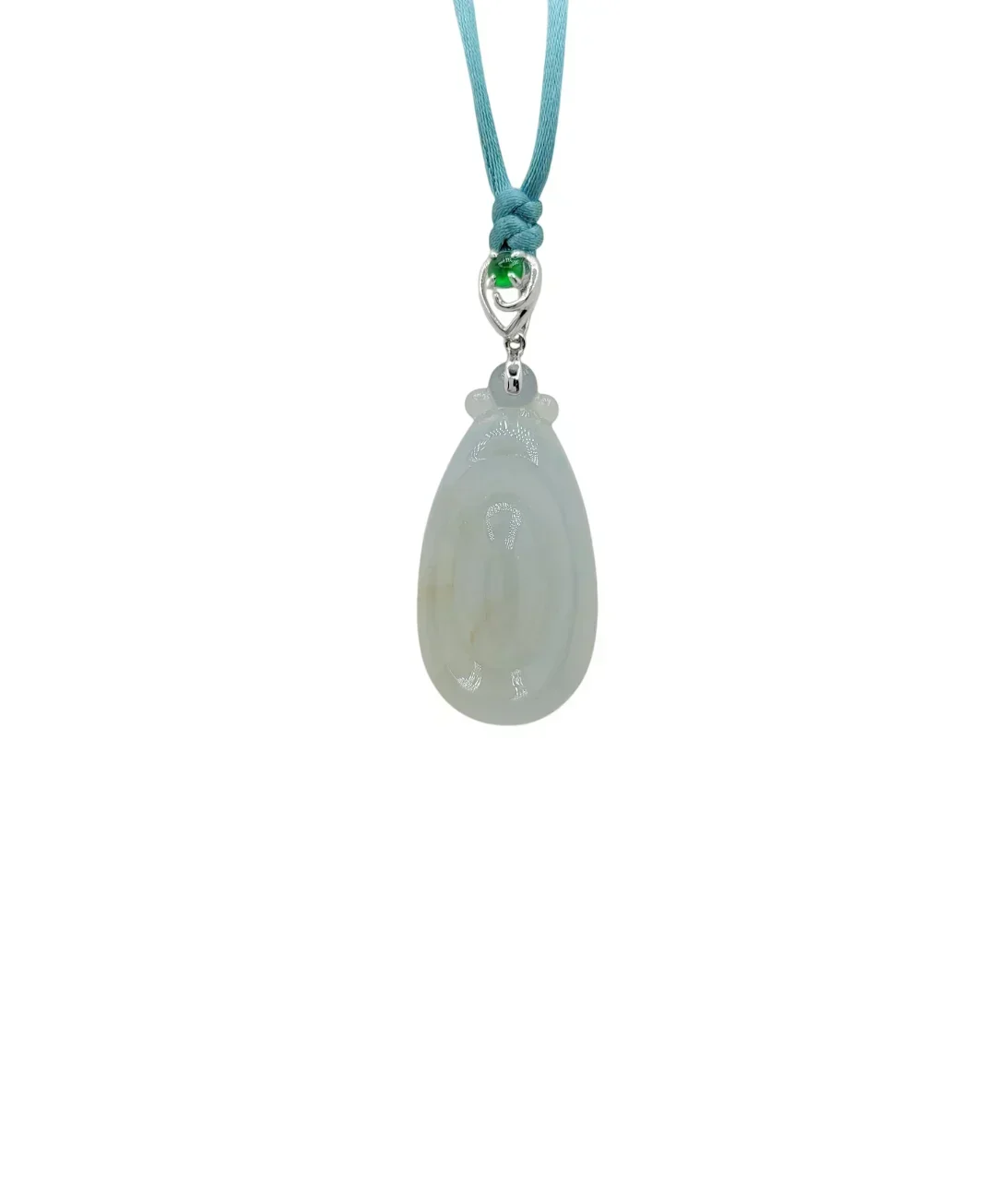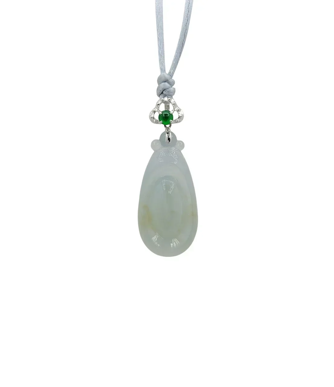 18K White Gold Icy Jadeite Jade Blessings with You Pendant