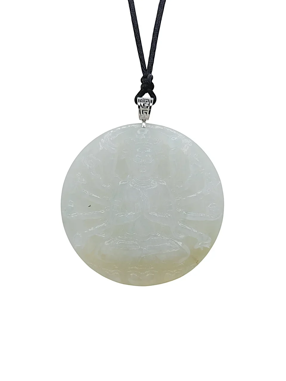 18K White Gold Icy Thousand-Armed Guanyin Jadeite Jade Pendant
