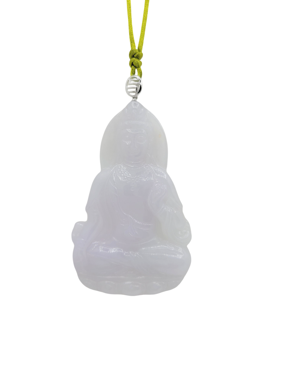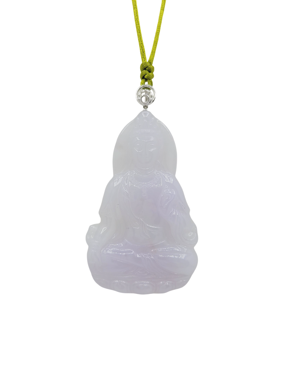 18K White Gold Light Purple Guanyin Jadeite Jade Pendant