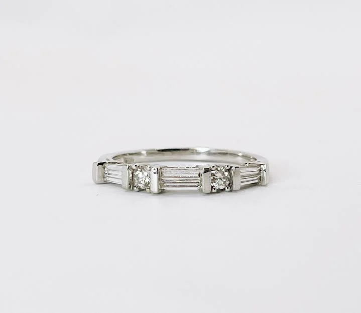 18K White Gold Round and Baguette Natural Diamond Ring