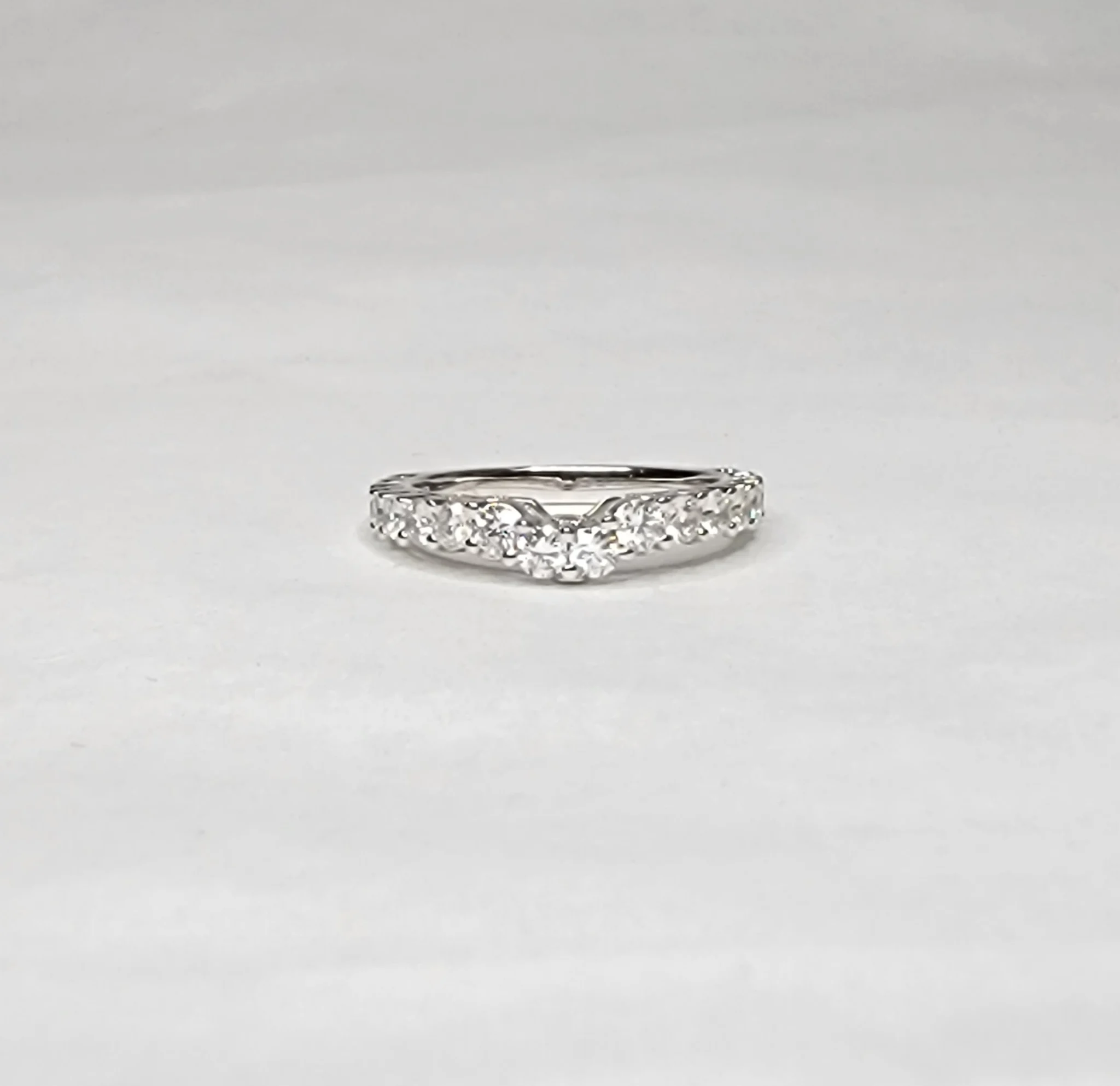 18K White Gold Shared Prong Raised Natural Diamond Dip Ring