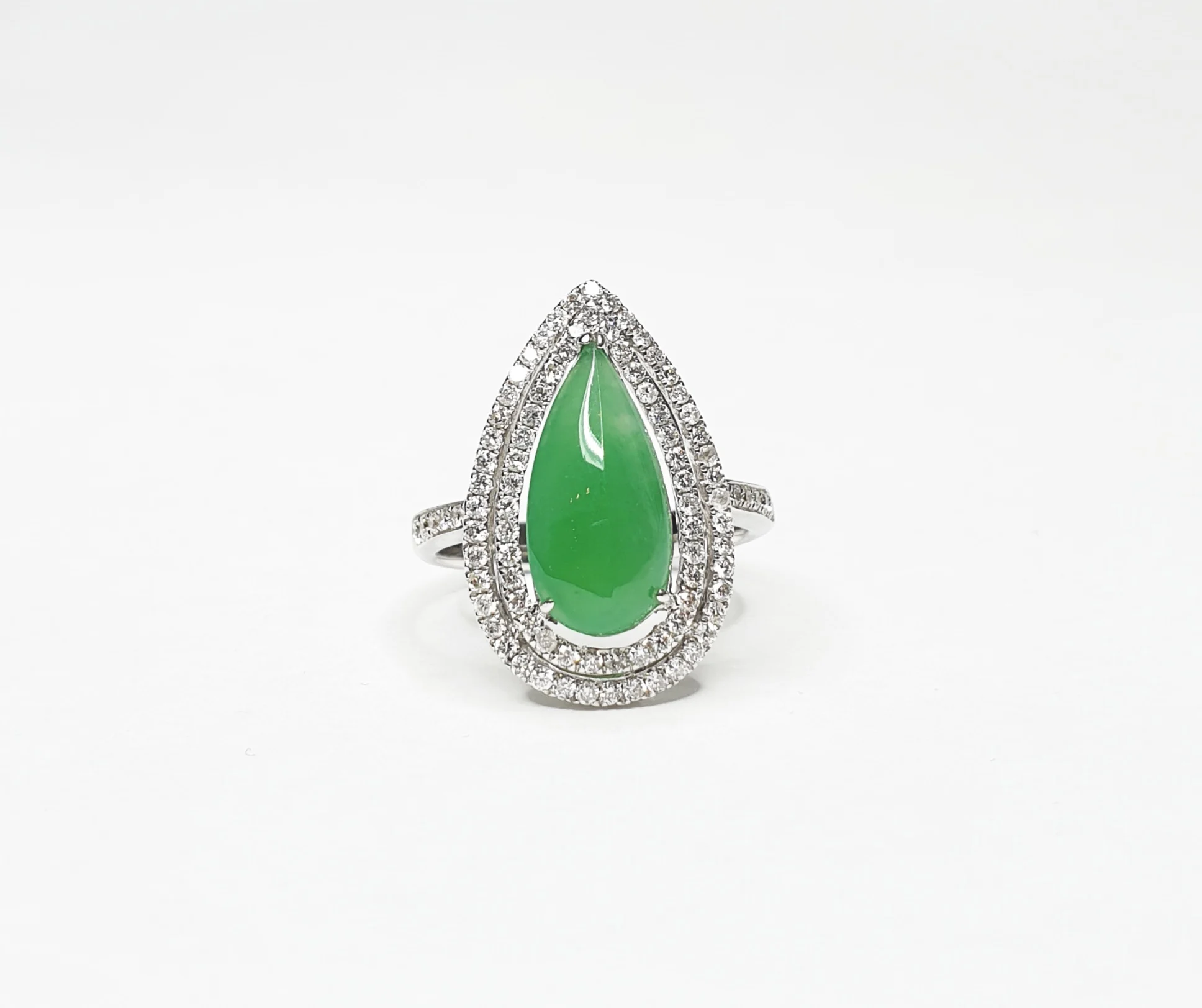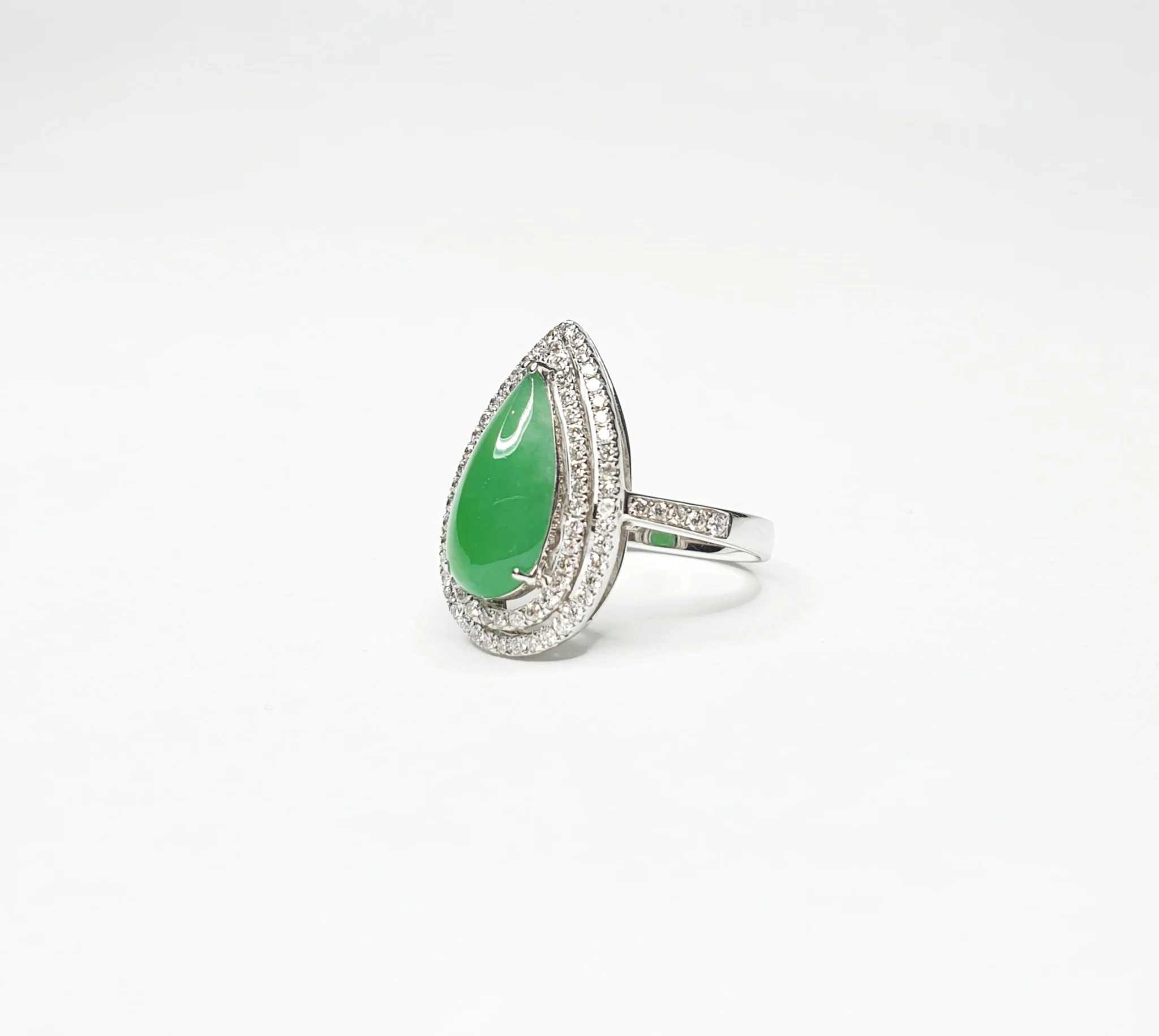 18K White Gold Tear Drop Jadeite Jade Diamond Ring