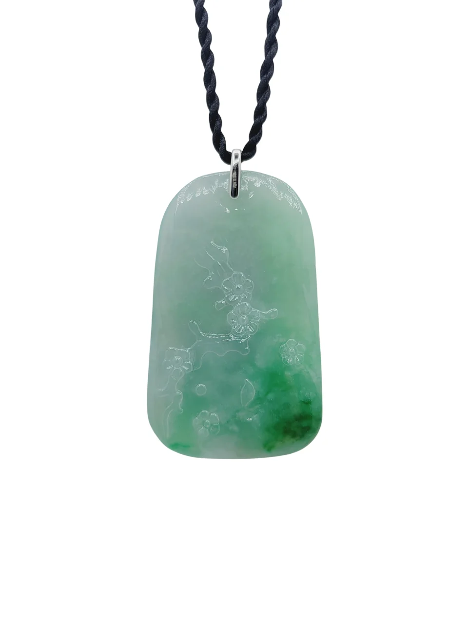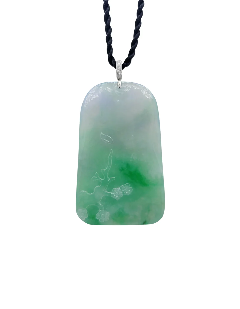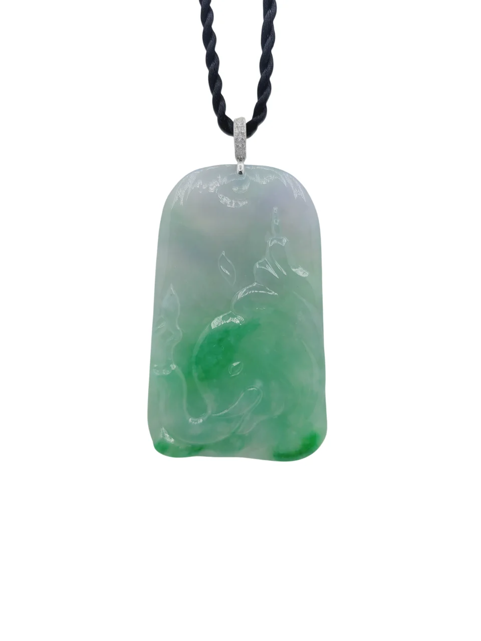 18K White Gold White with Pale & Medium Green Patches And White with Pale & Light Green Patches Carved Jadeite Jade Pendant