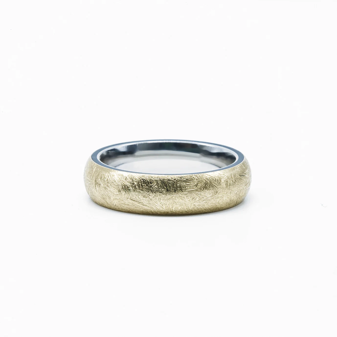 14K 3 layer Diamond Brush Two Tone Yellow and White Gold Enamel Ring