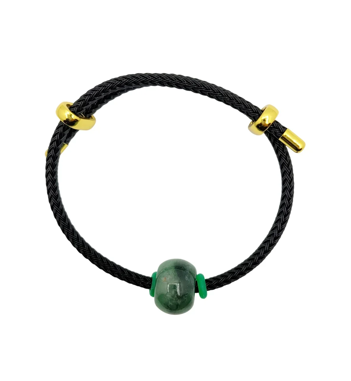 Dark Green Donut Jadeite Jade Bracelet with Adjustable String
