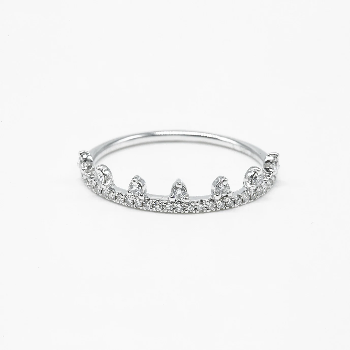 14K White Gold Crown Natural Diamond Ring
