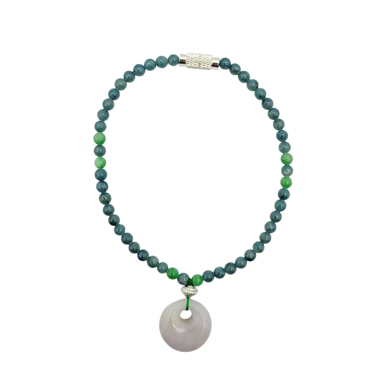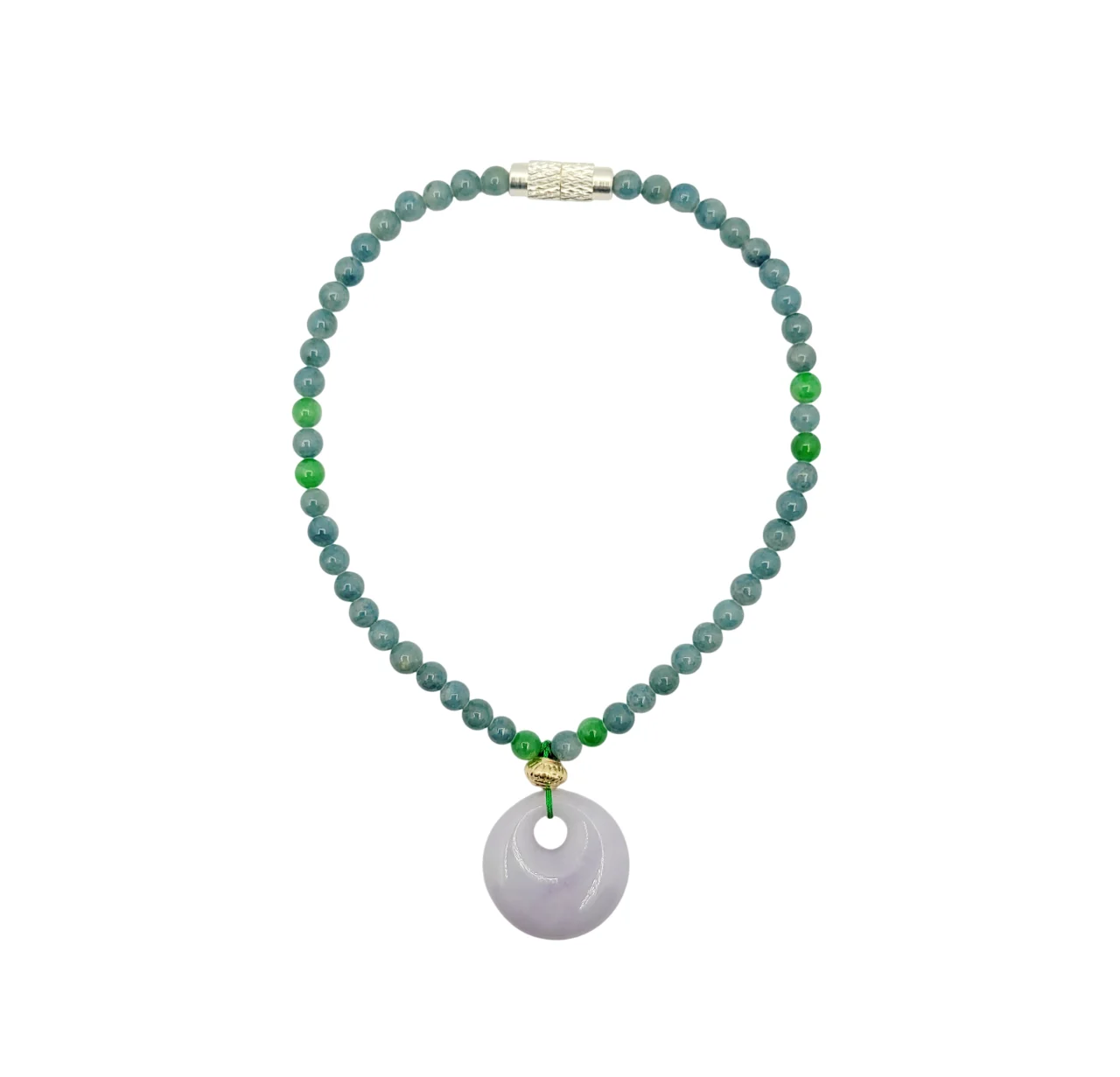 Green Beads and Light Purple Circle Charm Jadeite Jade Bracelet