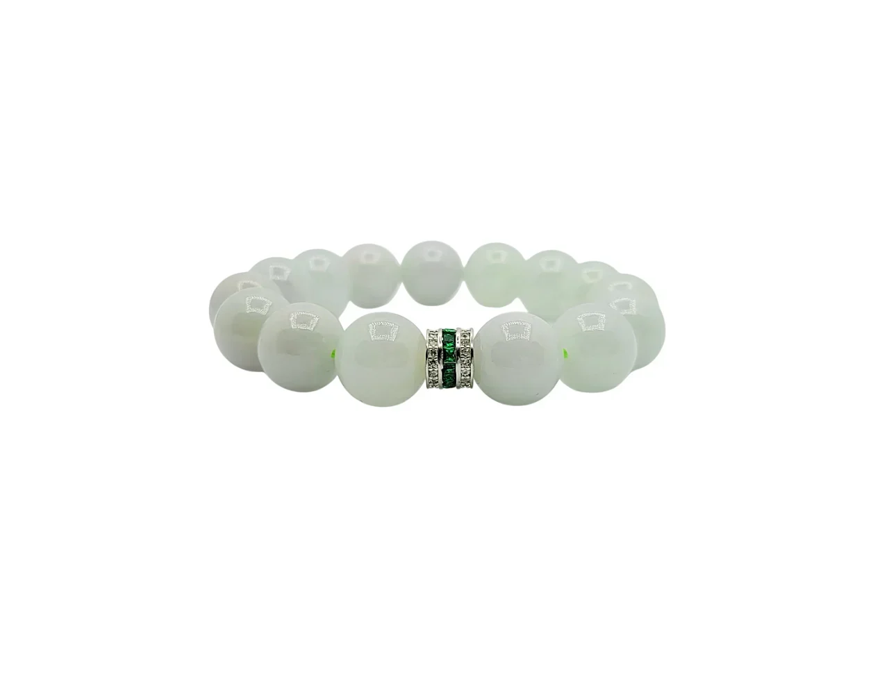 Icy Jadeite Jade Bracelet with Diamond and Emerald Simulant