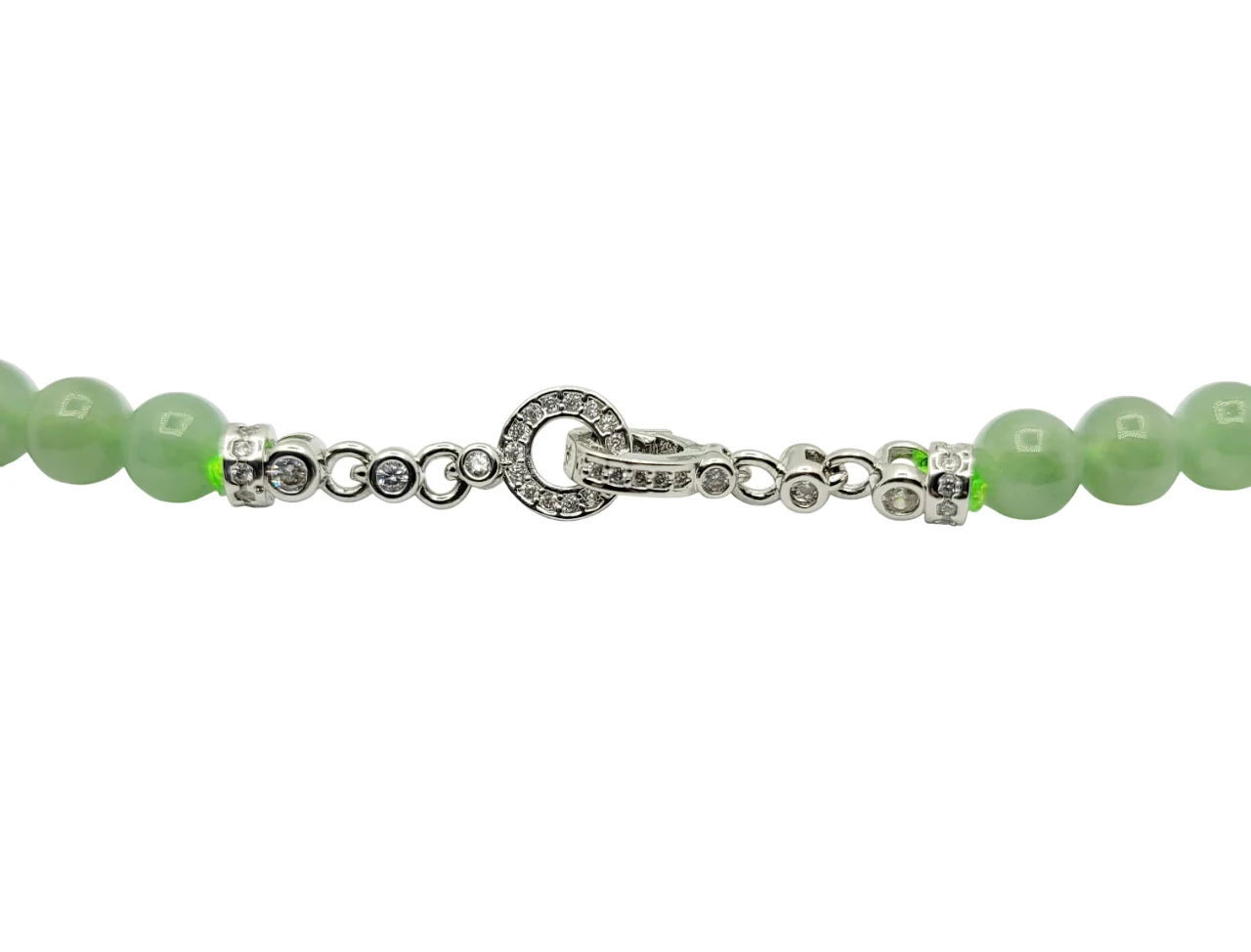 Light Green Jadeite Jade Bead Necklace with Diamond Simulant Clasp