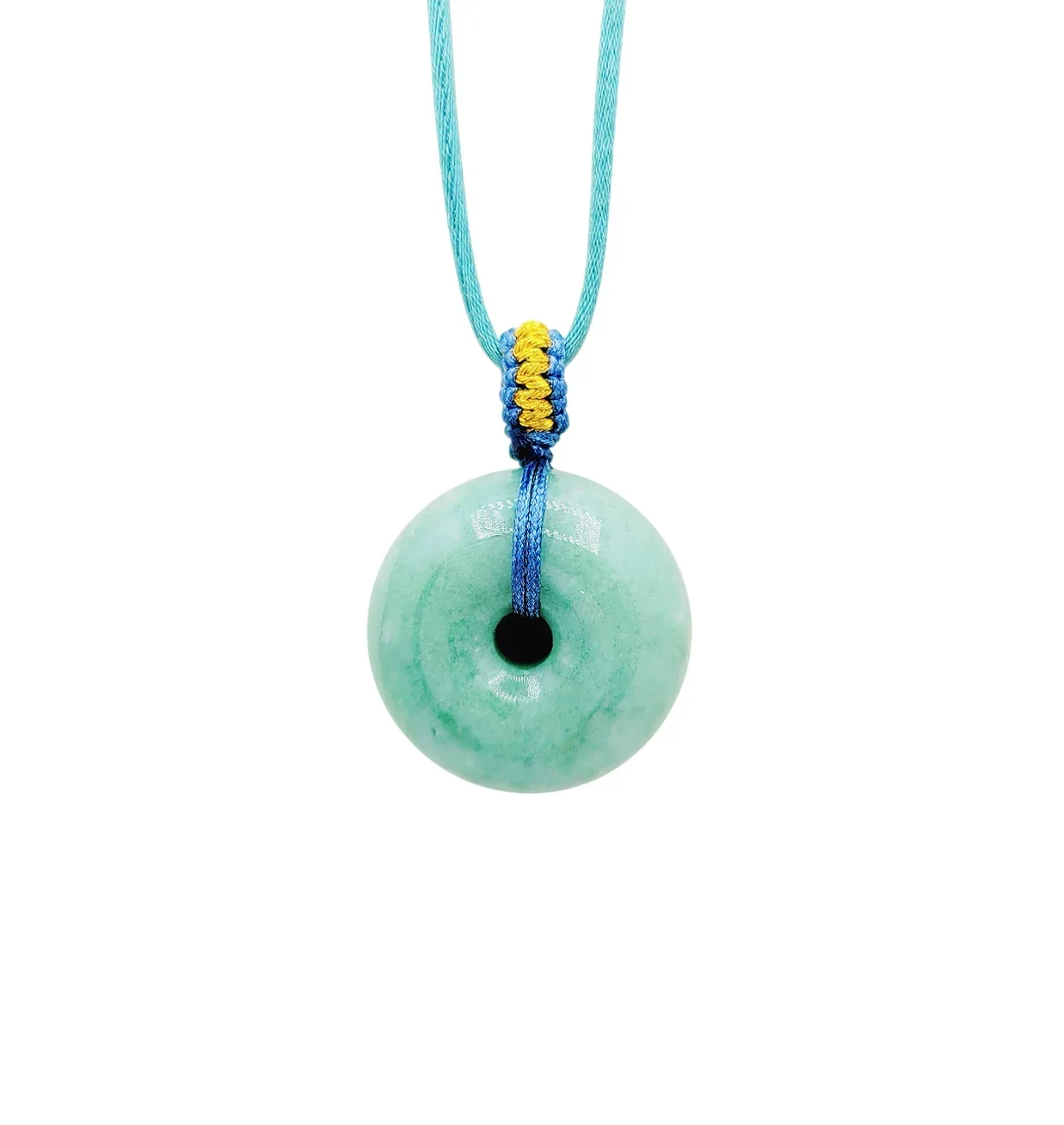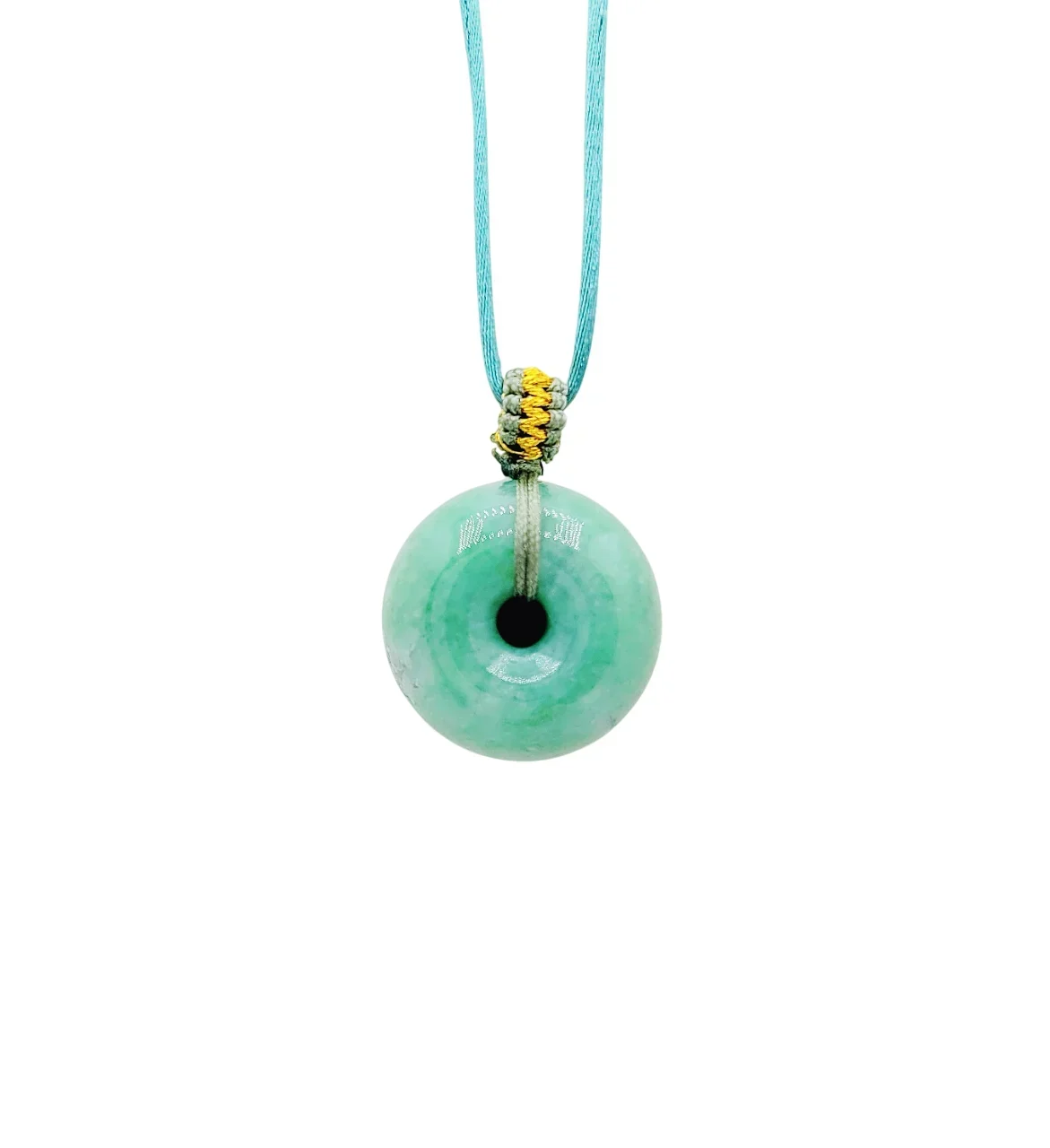 Light Green with Fortune & Good Health Donut Jadeite Jade Pendant