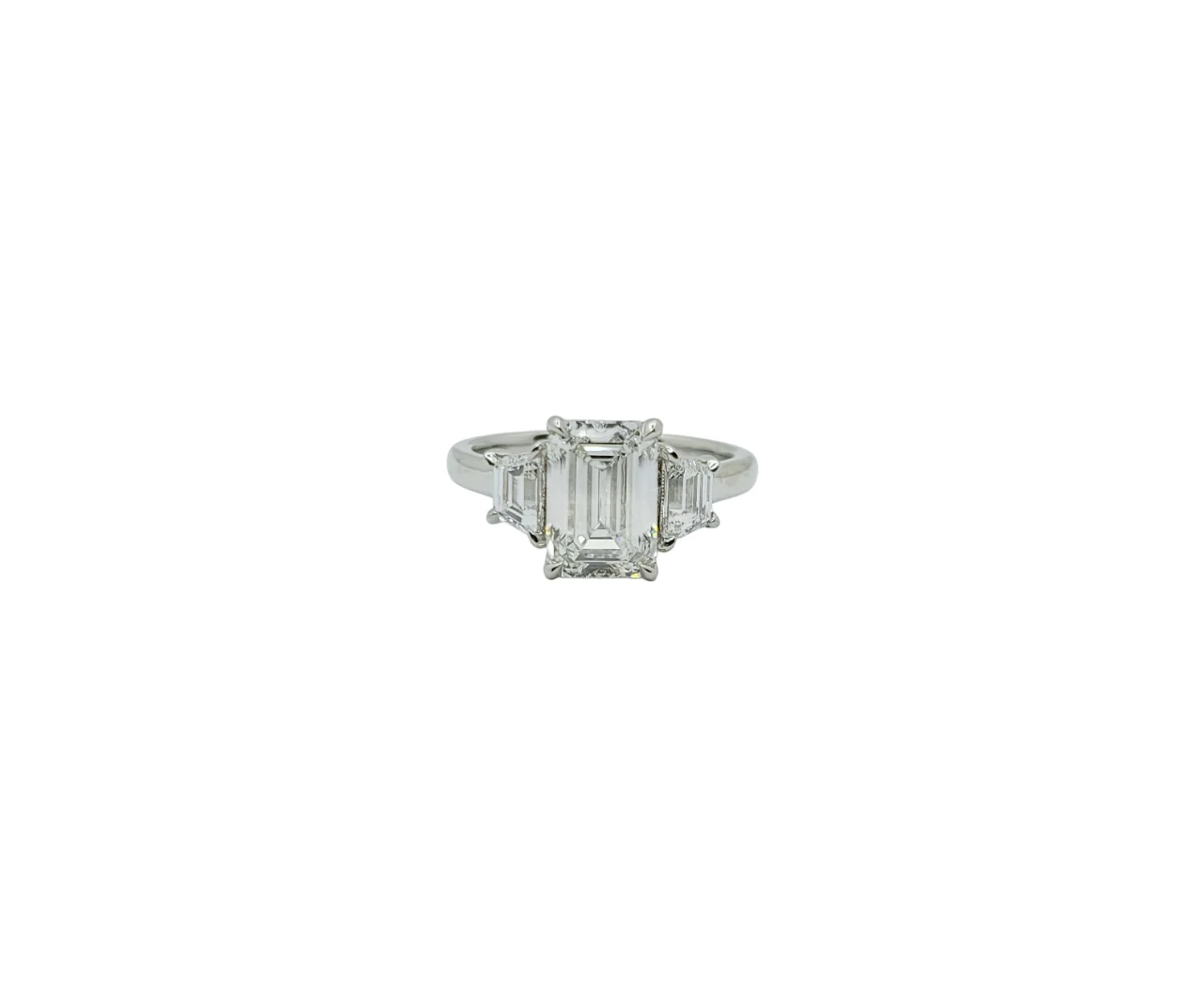 Platinum Emerald Cut with Trapezoid Sides Lab Grown Diamond Ring (2.08ct)