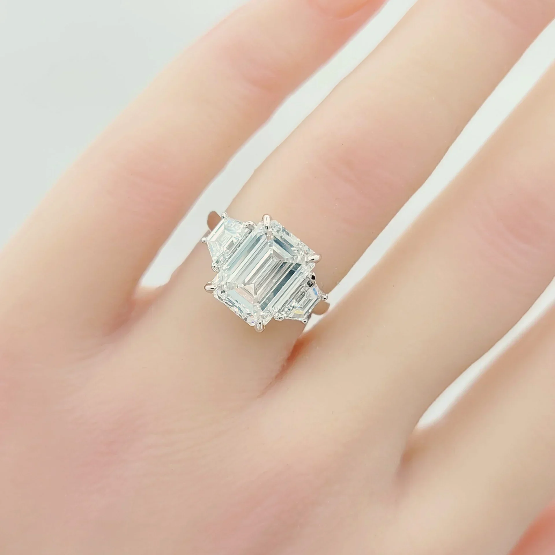Platinum 3.99ct Emerald Cut with Trapezoid Sides Lab Grown Diamond Ring