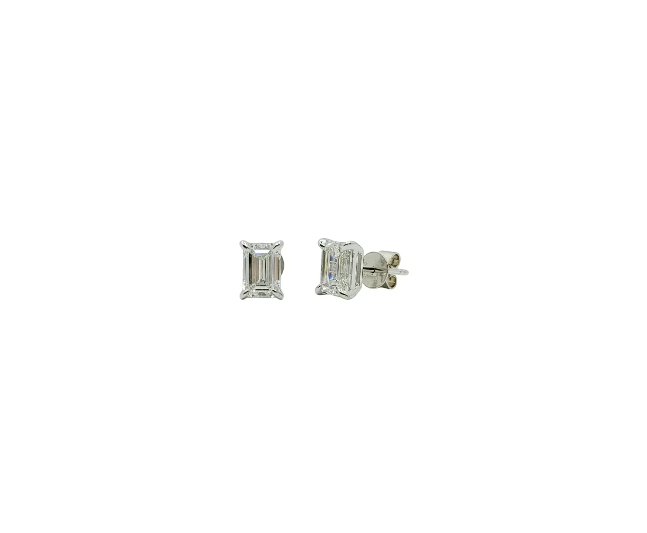 Platinum 4 Prong Emerald Cut Lab Grown Diamond Earrings (2.01ctw)