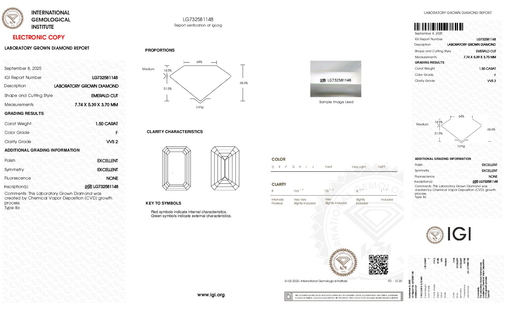 Lab Grown Diamond includes Certificate Appraisal by GIA Gemologist.