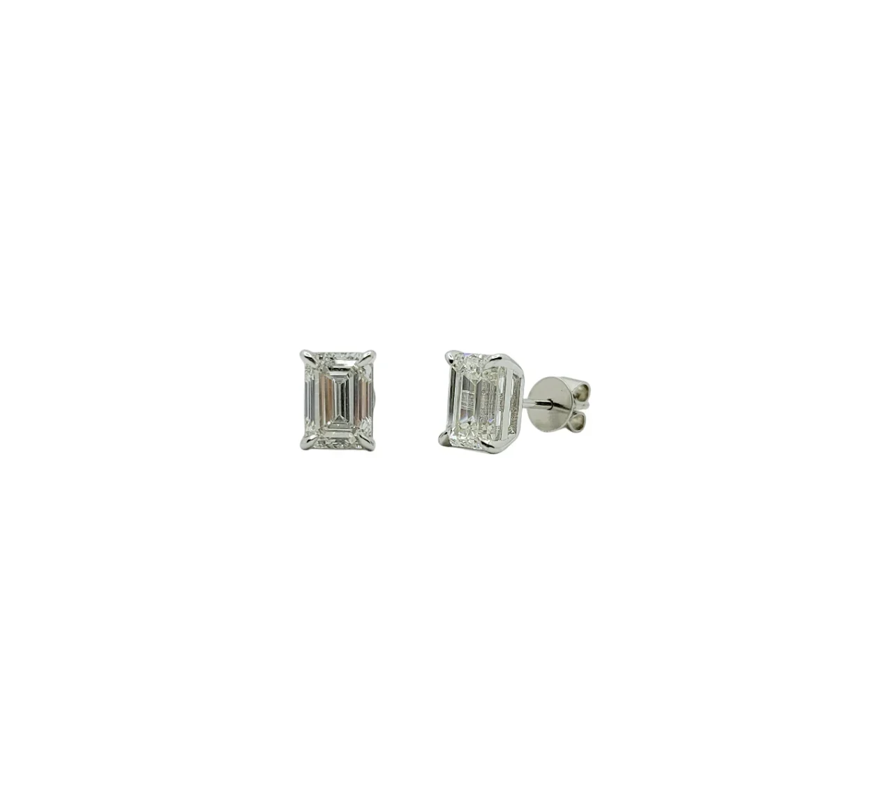 Platinum 4 Prong Emerald Cut Lab Grown Diamond Earrings (3ctw)