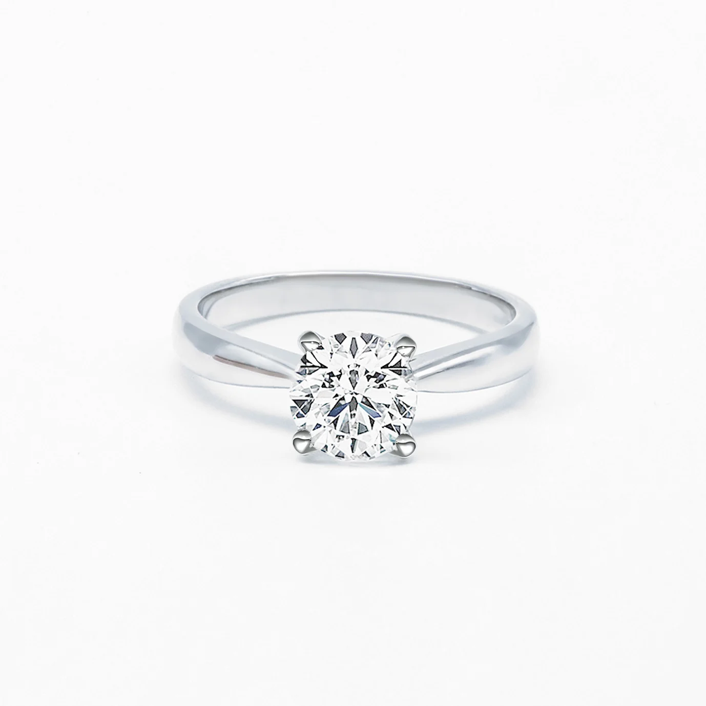 18K White Gold Raised Tapered Classic 4 Prong Diamond Ring