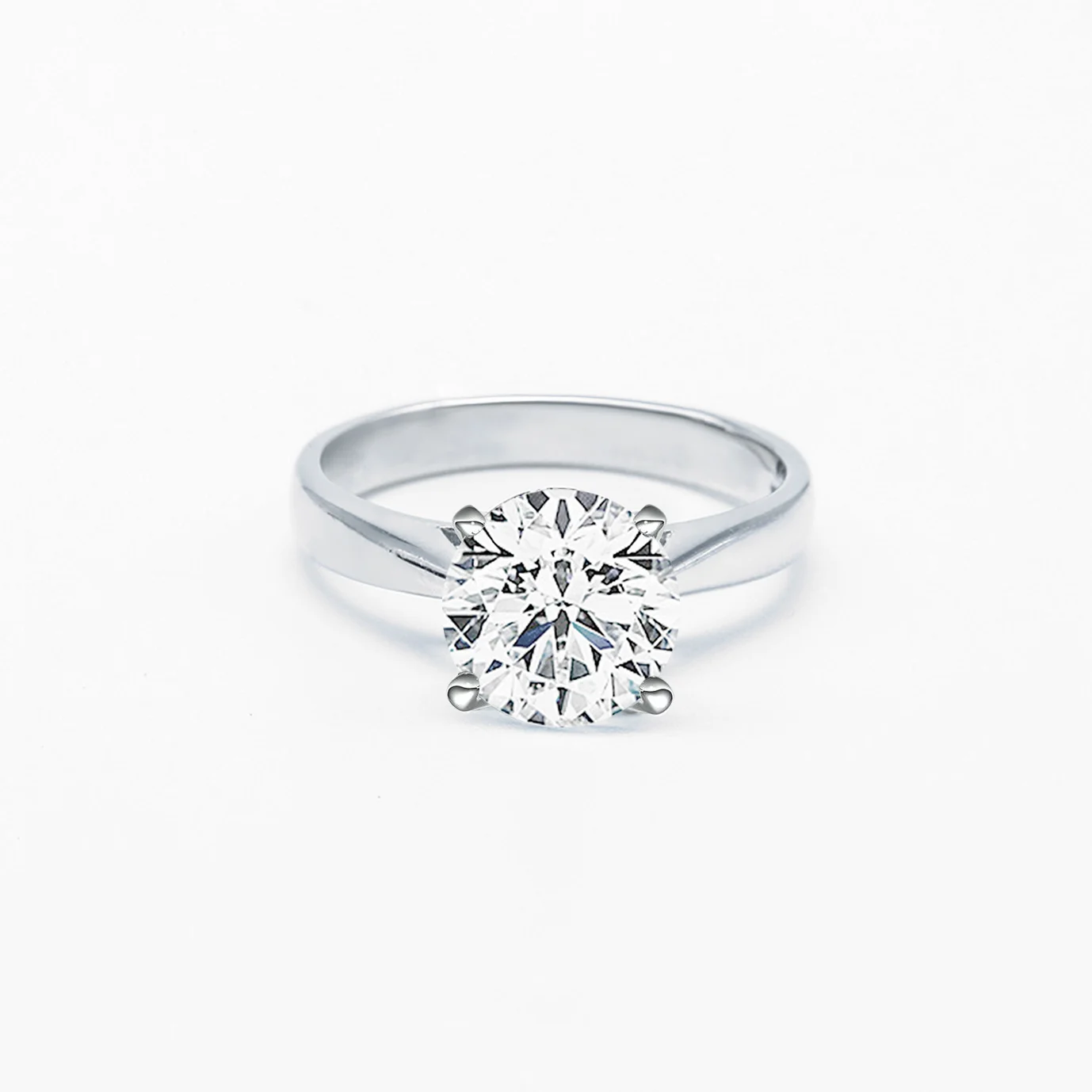 18K White Gold Raised Tapered Criss Cross 4 Prong Diamond Ring