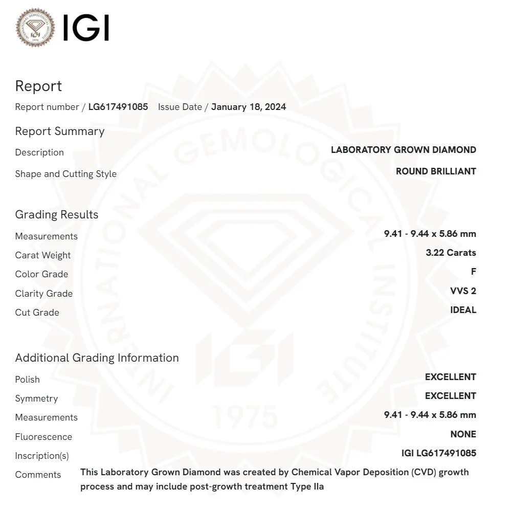 Lab Grown Diamond includes Certified Appraisal by GIA Gemologist