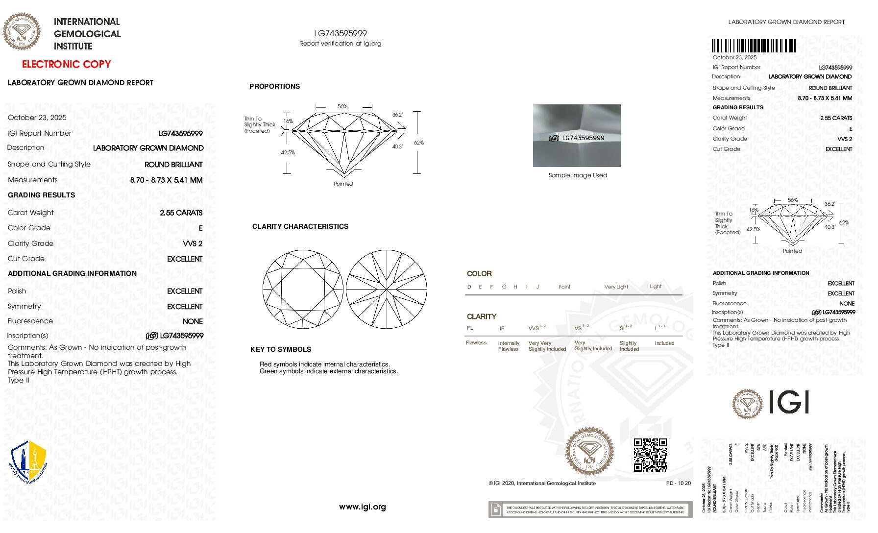 Round Cut Lab Grown Diamond 2.55ct E VVS2