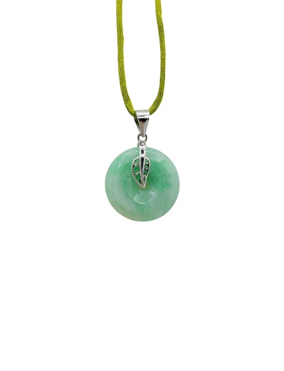 Silver Green Jadeite Jade Donut Pendant