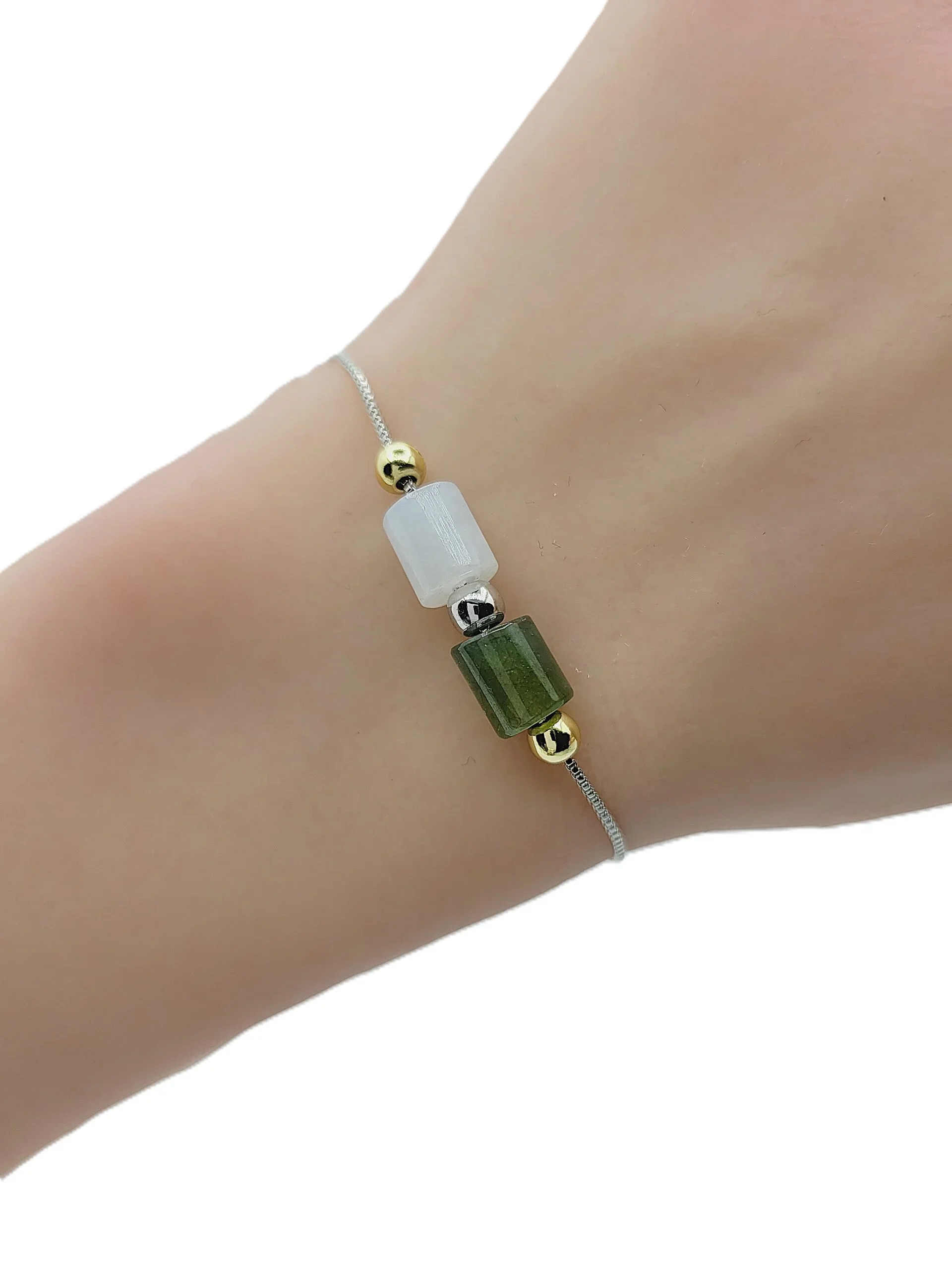 Silver Icy Cylinder Jadeite Jade Bracelet