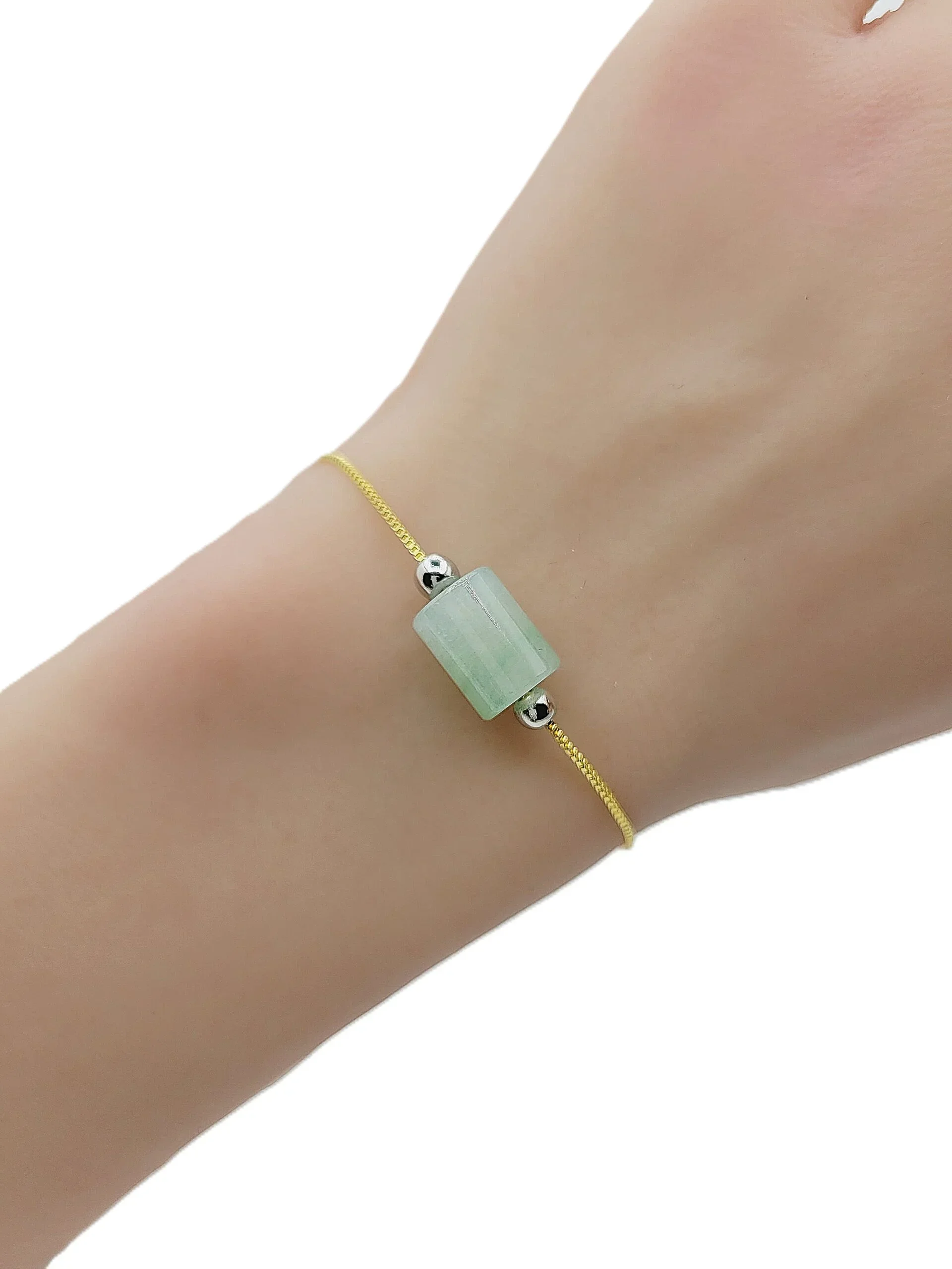 Silver Icy Cylinder Jadeite Jade Bracelet