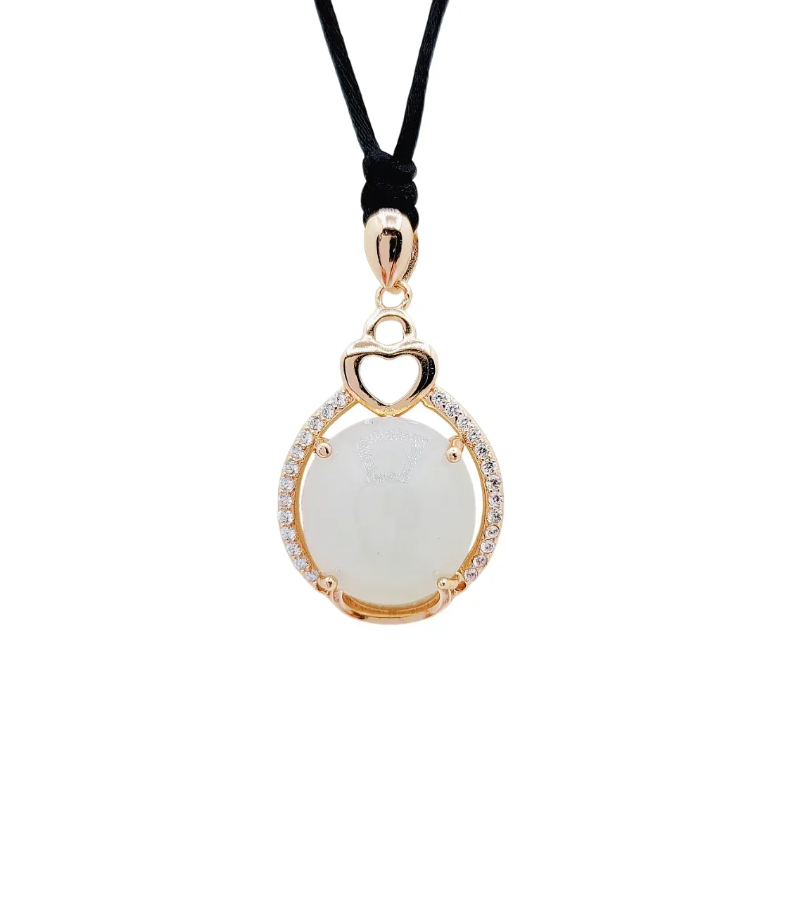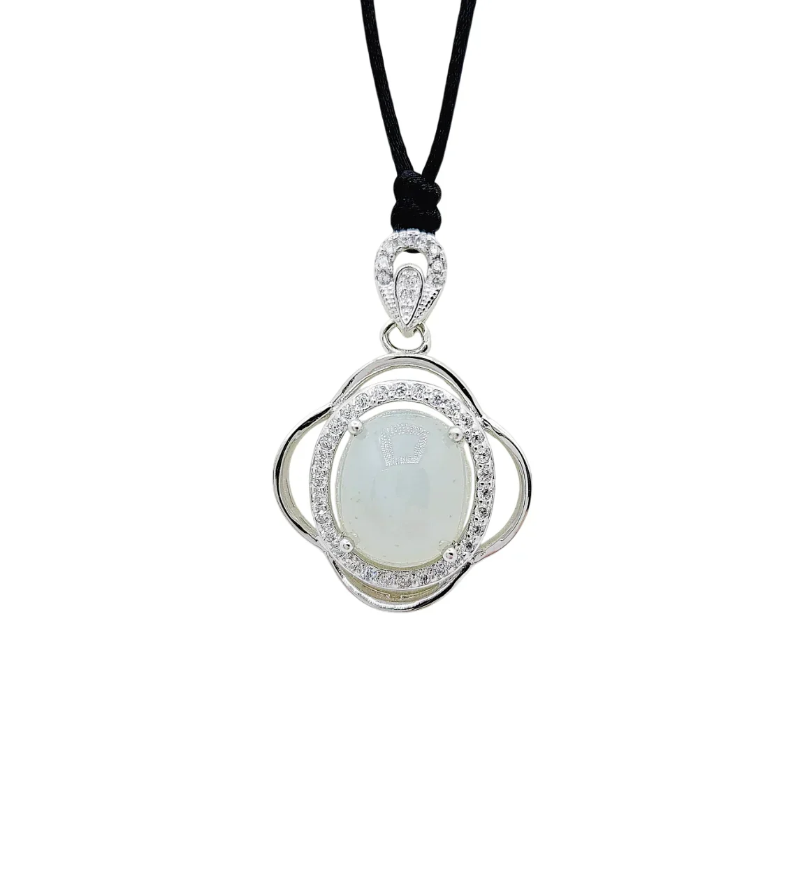 Silver Icy Oval Cabochon Jadeite Jade Pendant with Diamonds Simulant