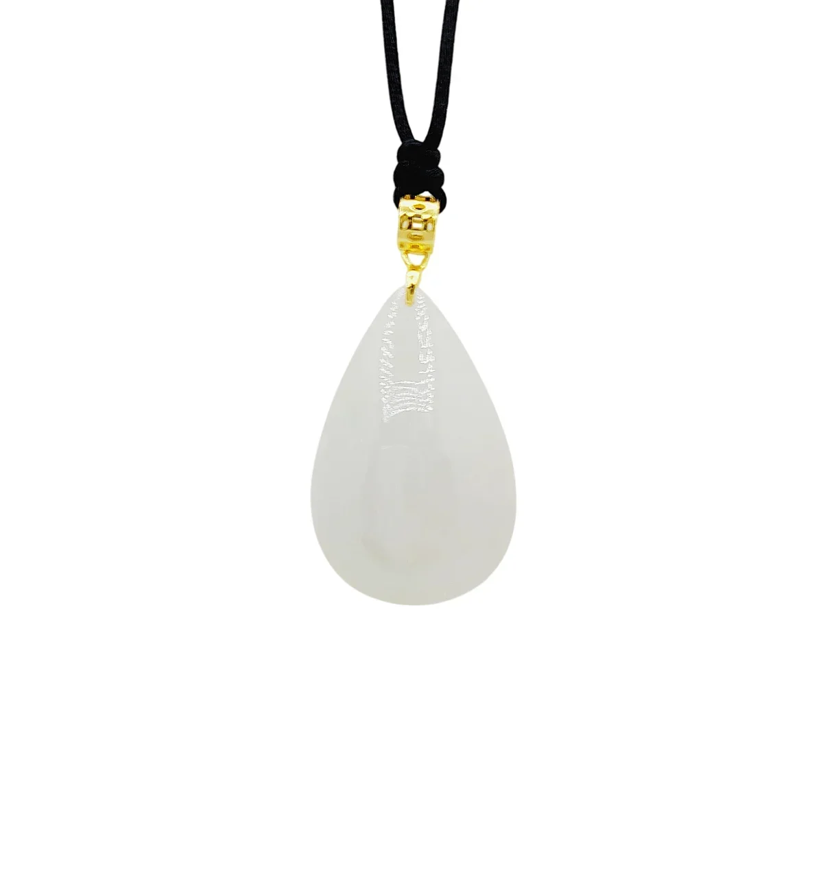 Silver Icy Tear Drop Jadeite Jade Pendant