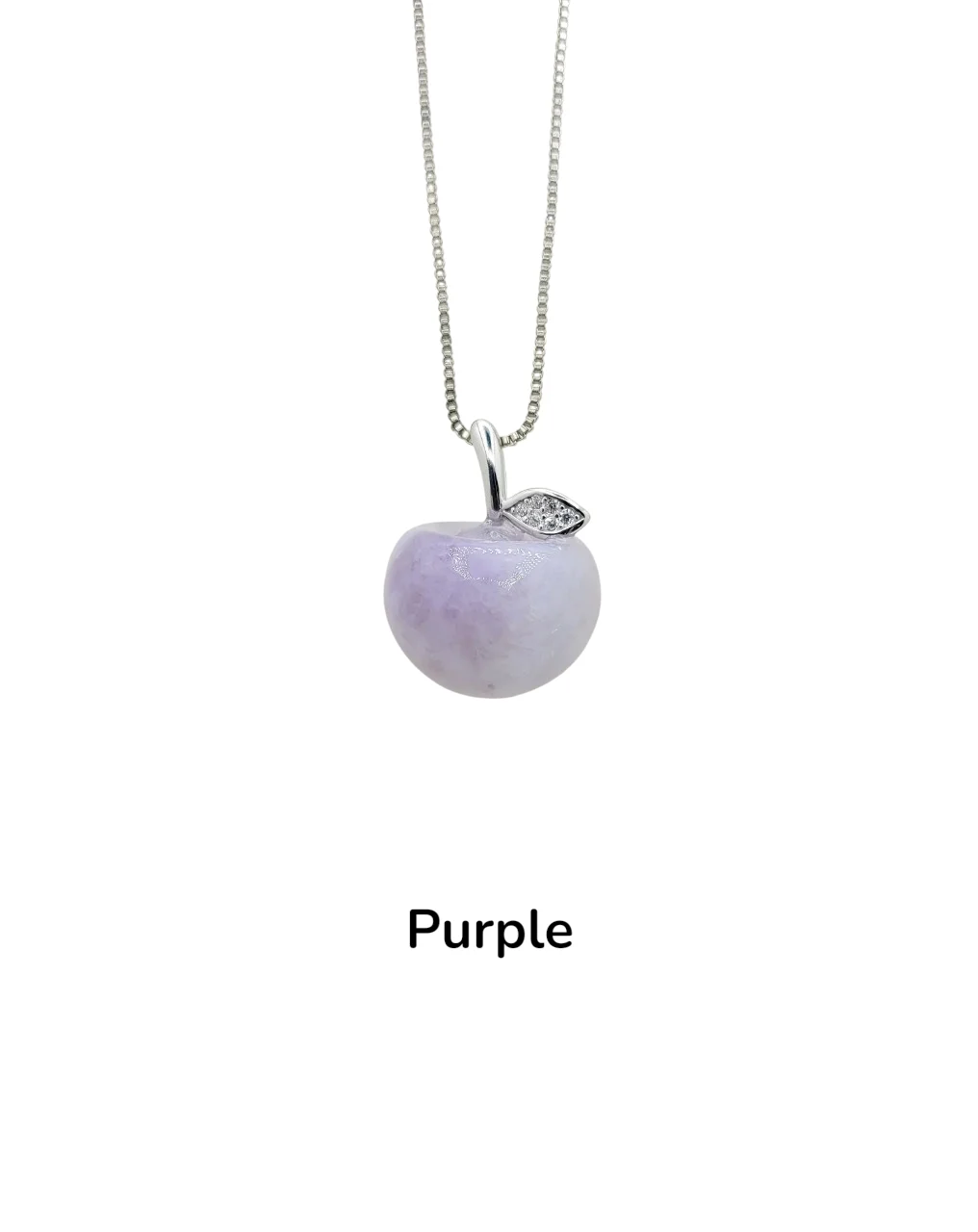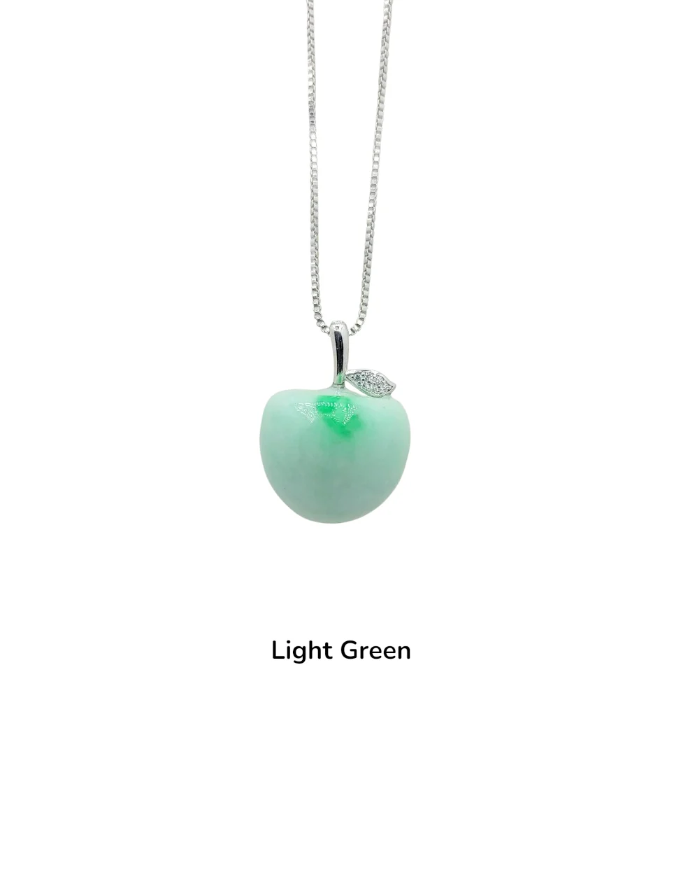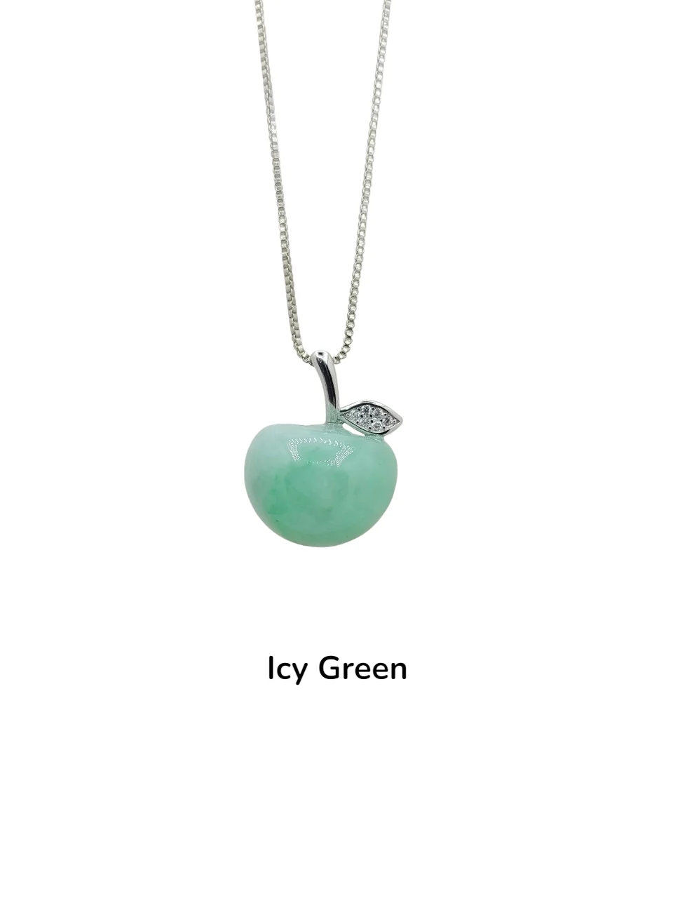 Silver Jadeite Jade Apple Pendant with Diamond Simulant