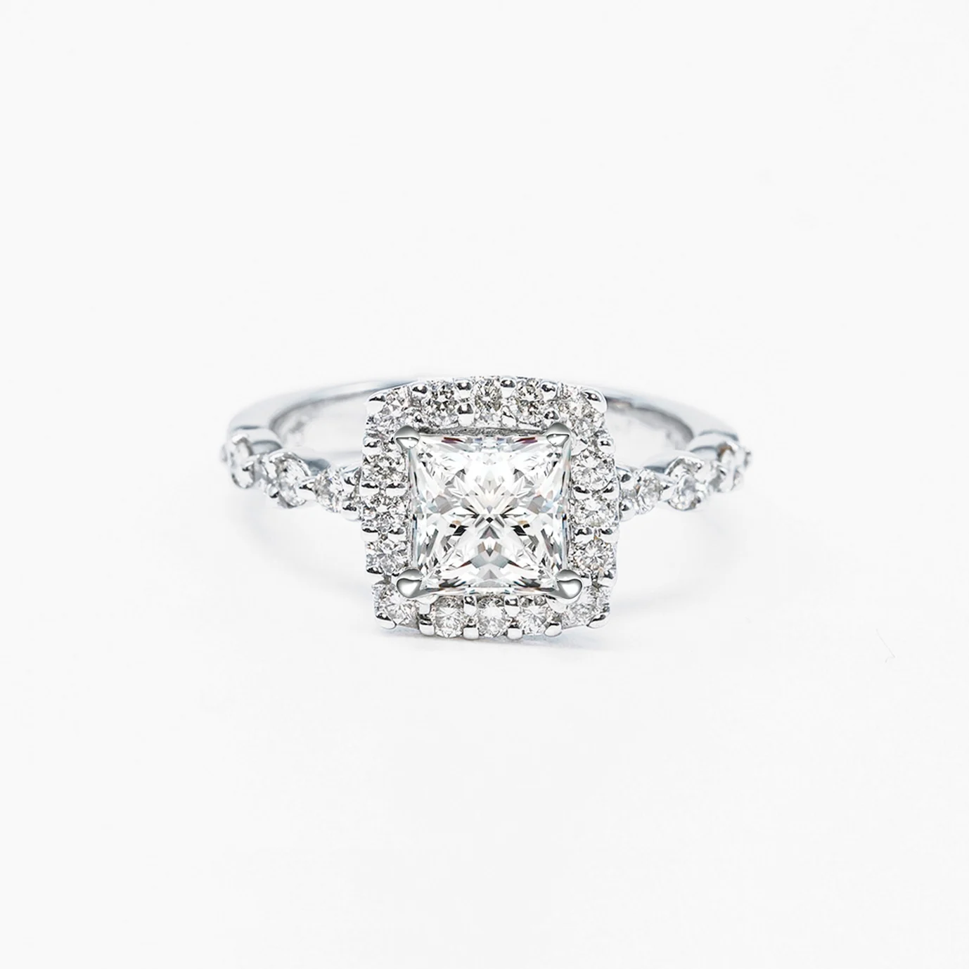 Setting fits 5.8 x 5.8mm princess cut center stone. For other dimensions, please contact for custom make order.