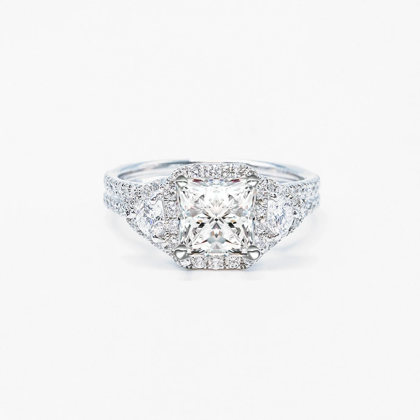18K White Gold Square Trio Wrap Halo Diamond Ring