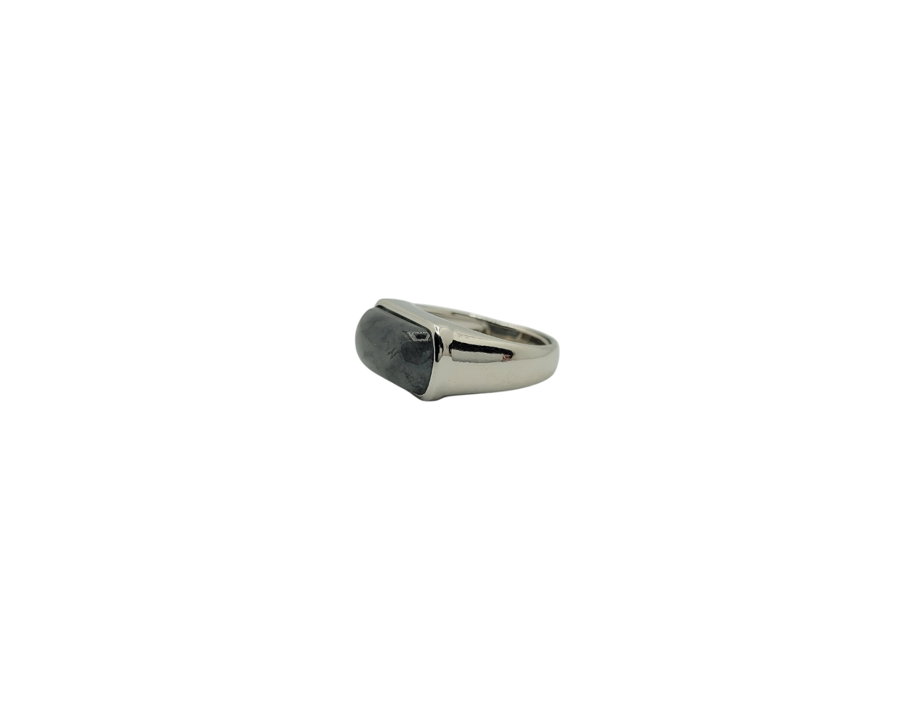 Silver Icy Black or Icy Yellow Rectangle Cabochon Jadeite Jade Ring