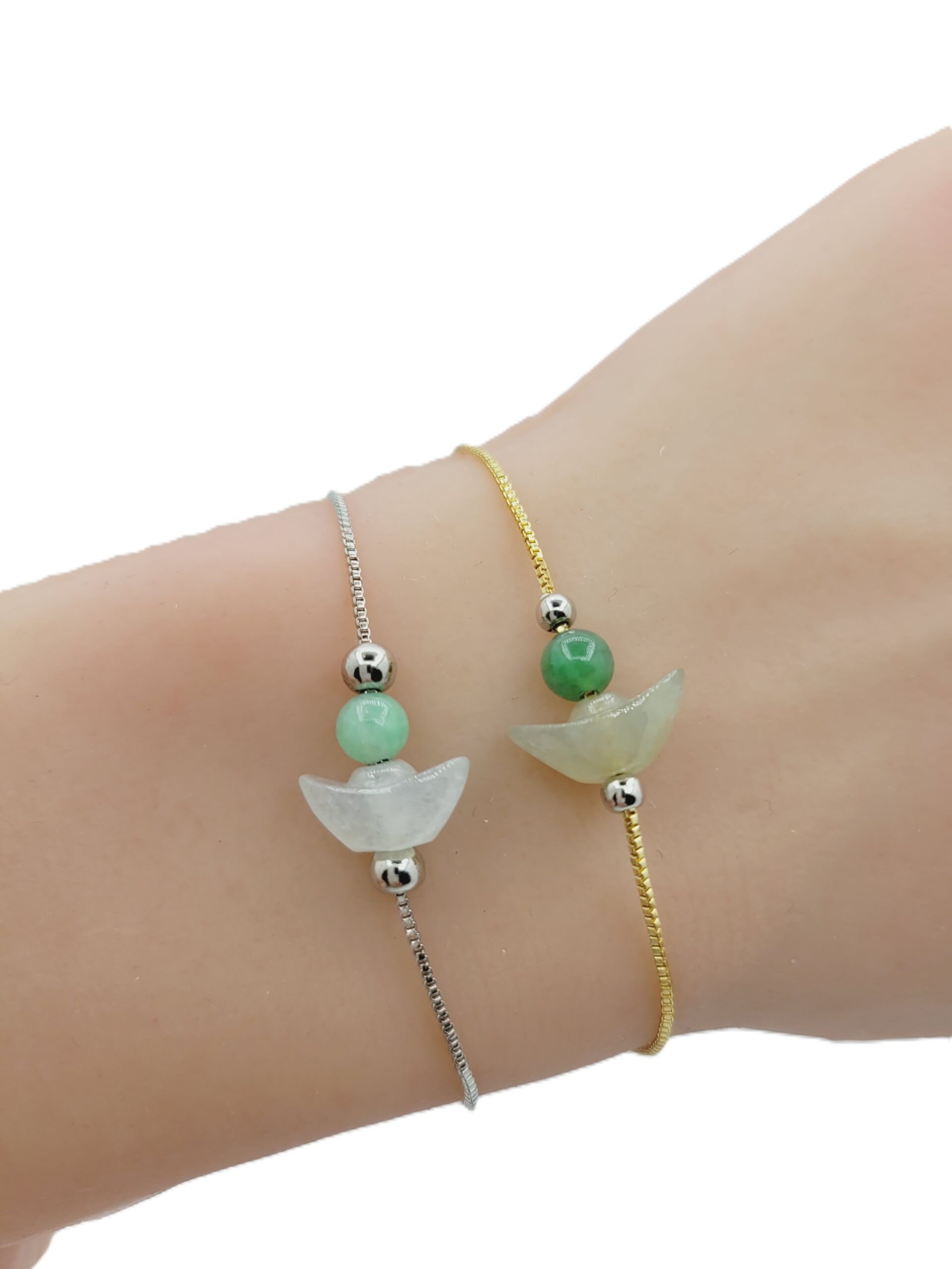Silver Icy Ingot and Green Bead Jadeite Jade Bracelet
